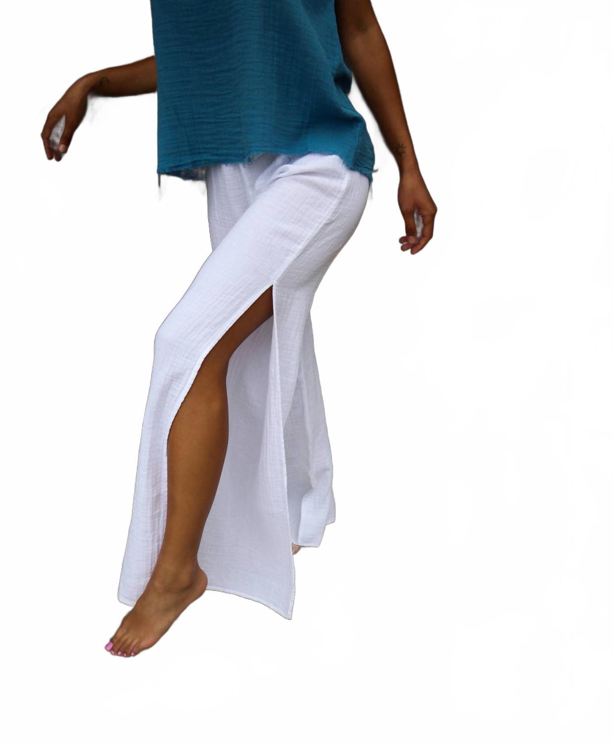 Идеально скроенные прямые брюки, которые вам понравятся в любом цвете! Откройте для себя брюки с боковыми разрезами от STARKx - незаменимую вещь в вашем летнем гардеробе. Эти однотонные белые брюки с застежкой-липучкой обеспечивают комфортную посадку и высокие разрезы по бокам для создания шикарного образа в стиле бохо. Расклешенный крой и завязка на щиколотке позволяют создавать разнообразные образы - от непринужденного дневного выхода до нарядного вечернего. Уход прост: машинная стирка и сушка в стиральной машине - эти брюки станут вашим любимым аксессуаром для отпуска.