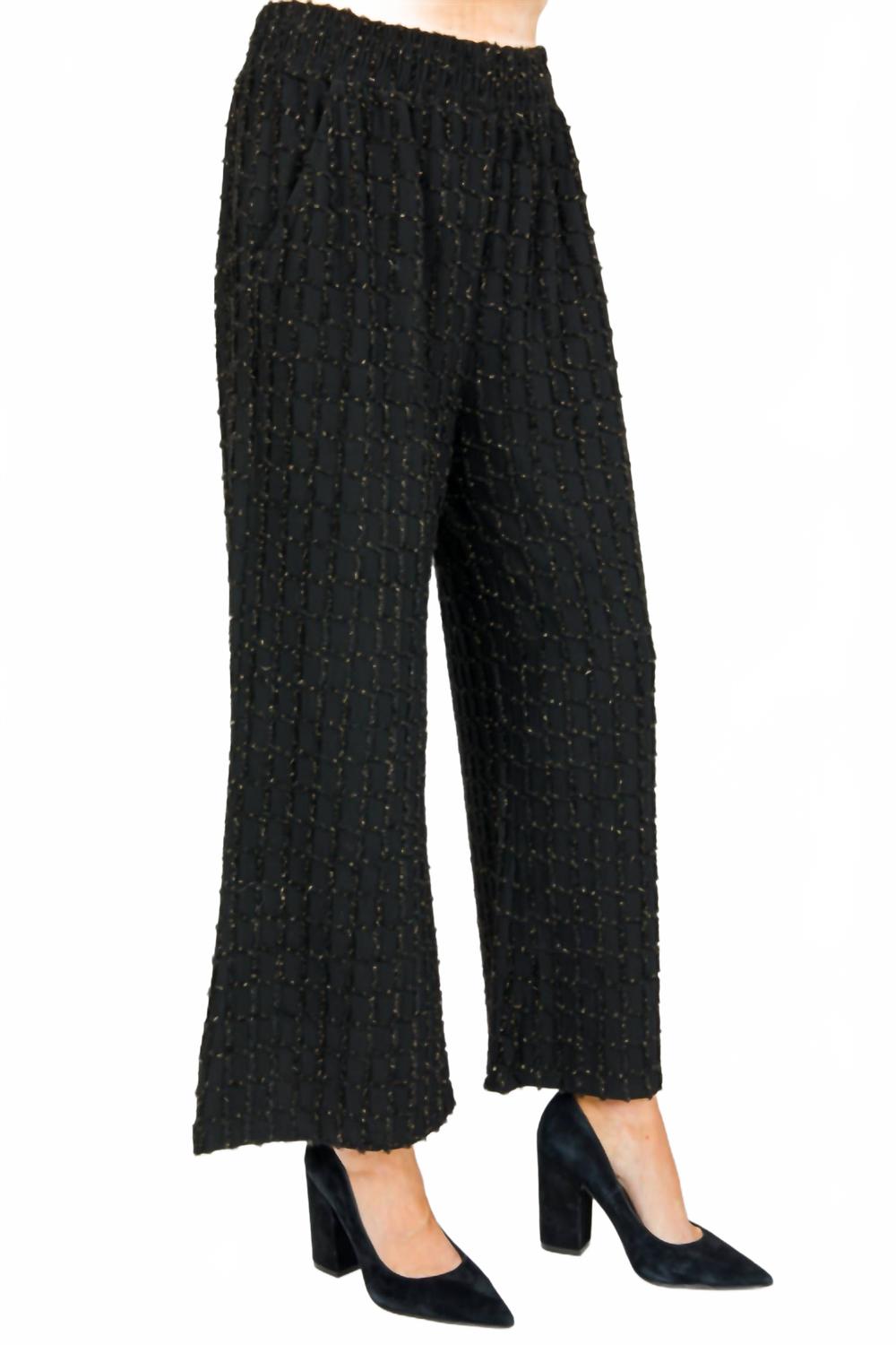 Добавьте изысканности в свой гардероб с брюками All That Glitters от SEE AND BE SEEN. Брюки отличаются высокой талией и свободным кроем в элегантном черном цвете. Эти блестящие текстурированные брюки имеют широкий крой с укороченным внутренним швом длиной 24,5 дюйма. Они изготовлены из смеси 65% полиэстера, 32% вискозы и 3% спандекса. Удобная застежка на липучке, а функциональные карманы обеспечивают дополнительную практичность. Уход: машинная стирка. Идеально подходит для создания максималистичного образа на осенних и праздничных выходах.