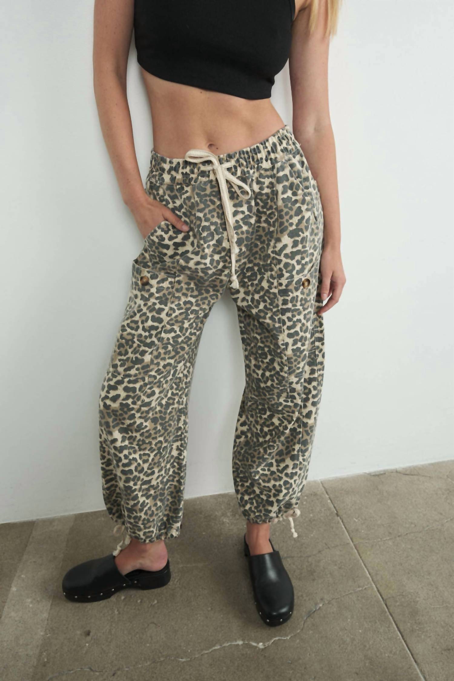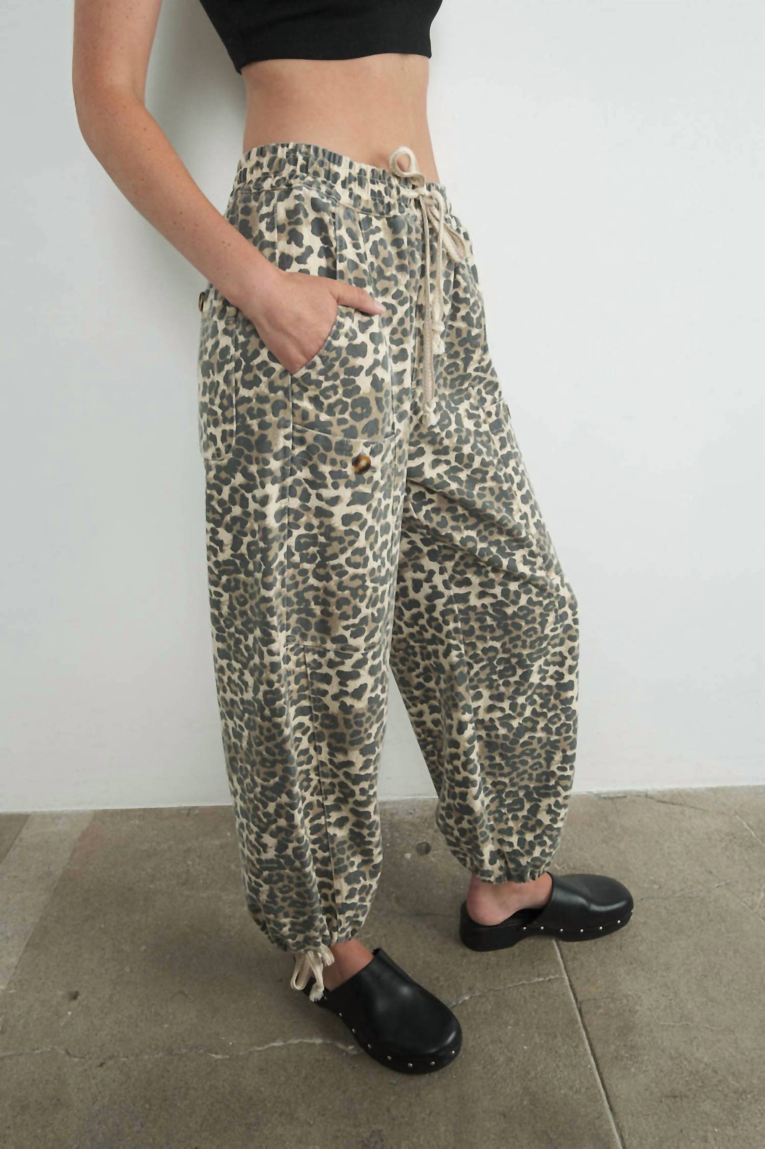 Оцените непринужденный стиль с ярким леопардовым принтом, который станет ярким акцентом. Модель легко надевается, что делает ее идеальным вариантом для любой повседневной прогулки, а удобный шнурок на талии и подоле добавляет изюминку. Большой карман подчеркивает стиль и функциональность, а джоггерский крой с зауженными укороченными штанинами обеспечивает комфорт. Высокая талия соответствует стилю бохо-шик и идеально подходит для осенних путешествий.