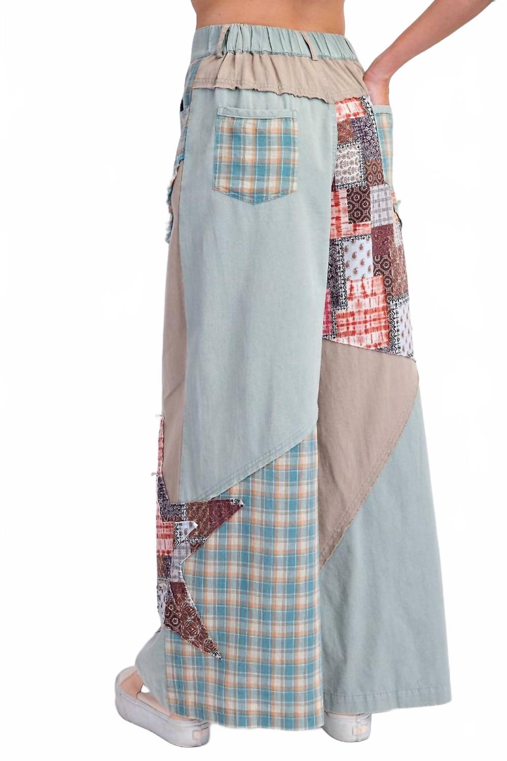 Представляем брюки Patchwork Mix N Match Washed от Easel - яркое дополнение к вашему гардеробу благодаря эффектному многоцветному дизайну. Эти брюки свободного кроя с высокой талией изготовлены из 100% хлопка и дополнены уникальным комбинированным принтом в стиле пэчворк и нашивками в виде звезд. Стиль дополняют необработанные срезы и бахрома, передние и задние карманы, а также присборенный пояс сзади. Застежка: пуговица и молния. Уход: машинная стирка, сушка в стиральной машине. Размеры: длина: 42,5 дюйма, талия: 13,5 дюйма.