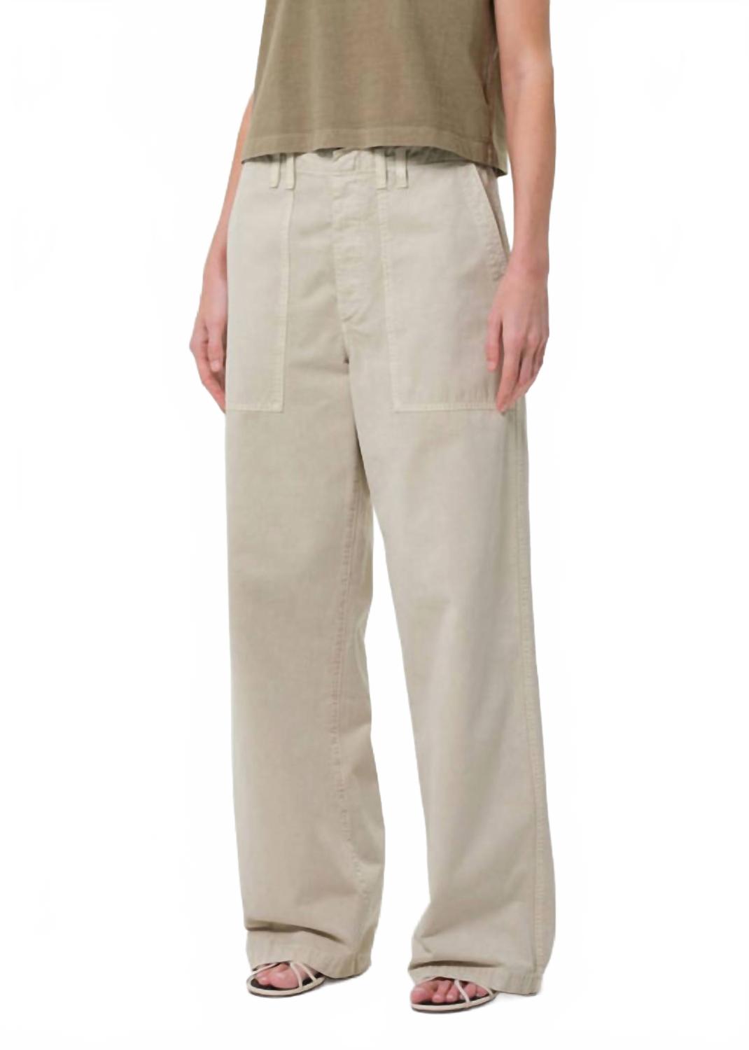 Ощутите утилитарный стиль в брюках Yuna Wide Leg от AGOLDE, отличающихся свободным кроем и широкими штанинами. Эти брюки цвета пемзы, изготовленные из жесткого сверхтонкого твила средней плотности, состоят из 100% хлопка. Брюки имеют характерную застежку на пуговицы и практичные карманы. Высота посадки 32 см, длина внутреннего шва 88 см. Уход за этими стильными брюками прост - достаточно стирать в стиральной машине в холодной воде, вывернув наизнанку, с вещами похожих цветов.