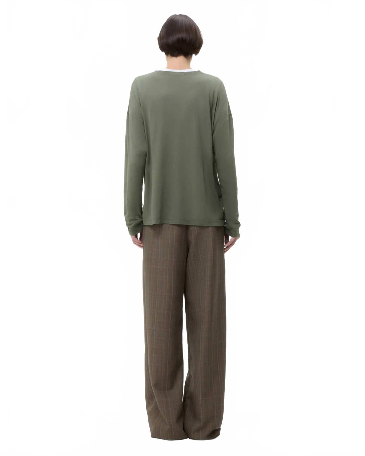 Представляем брюки Sulli от TWP - стильный выбор для современного гардероба в цвете «меланжевый серый мульти». Эти брюки со средней посадкой, свободным кроем и прямыми штанинами изготовлены из 100% шерсти, что придает им роскошный вид. Изготовленные в США, они имеют встречные складки, шлевки для ремня и удобную застежку на крючок. Уход прост: машинная стирка и сушка в сушильной машине для легкого ухода.