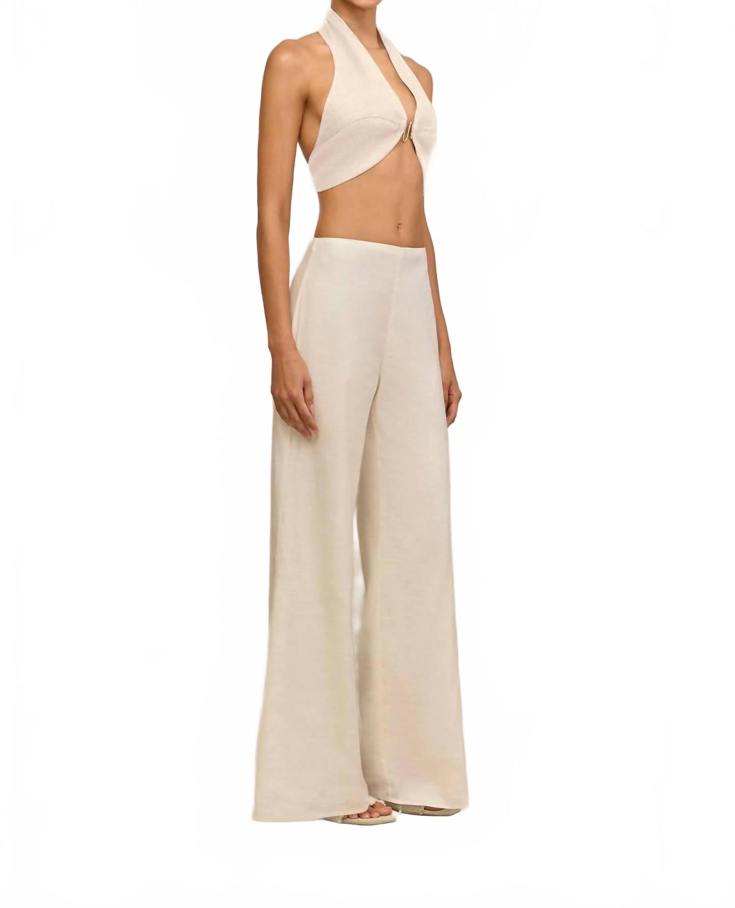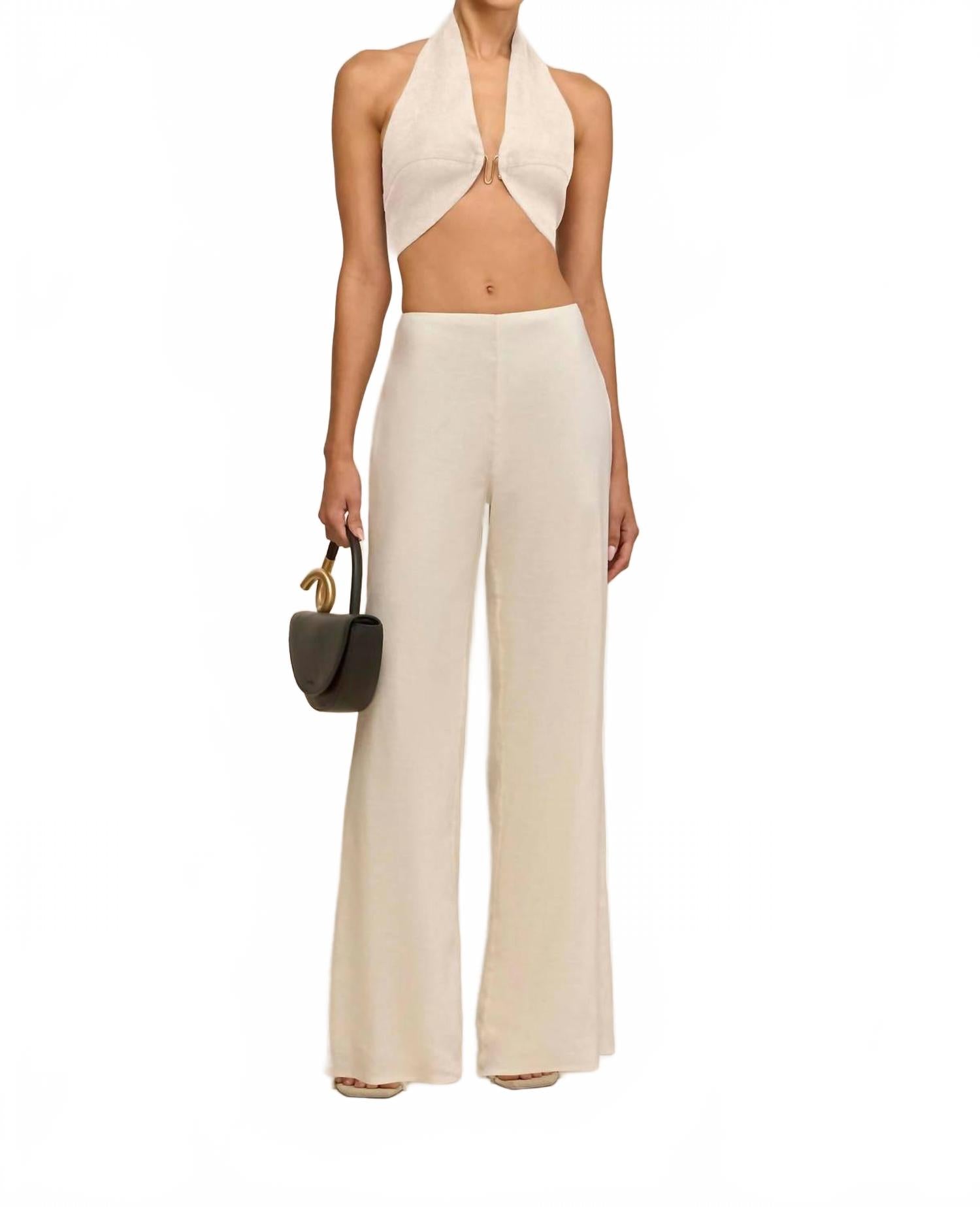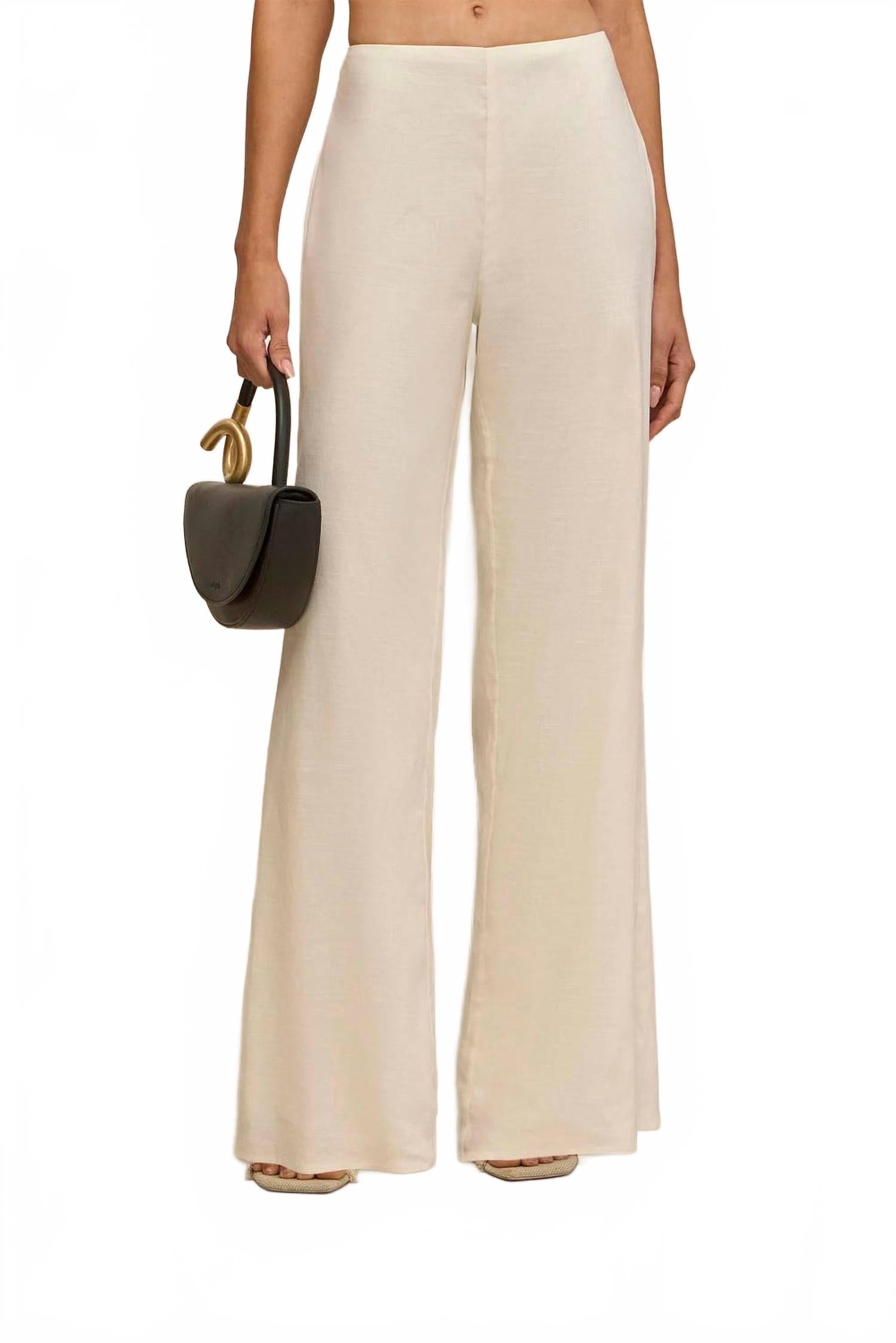 Минималистичная модель элегантного кремового оттенка. Широкие брюки с высокой талией из смеси льна и ситца обеспечивают легкость и идеально подходят для осенних путешествий. Скрытая молния сзади обеспечивает безупречный внешний вид, а расклешенный крой добавляет нотку изысканности. Для оптимального ухода рекомендуем сдавать изделие в химчистку.