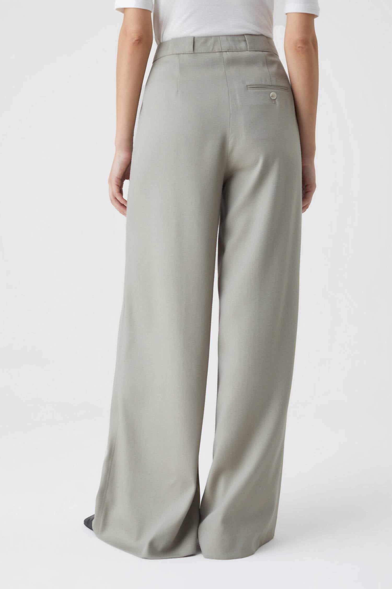Свободный крой. Средняя талия. Широкие штанины. Складки. Боковые карманы. Задний карман на пуговицах. Натуральная шерсть 54%, вискоза 46%.