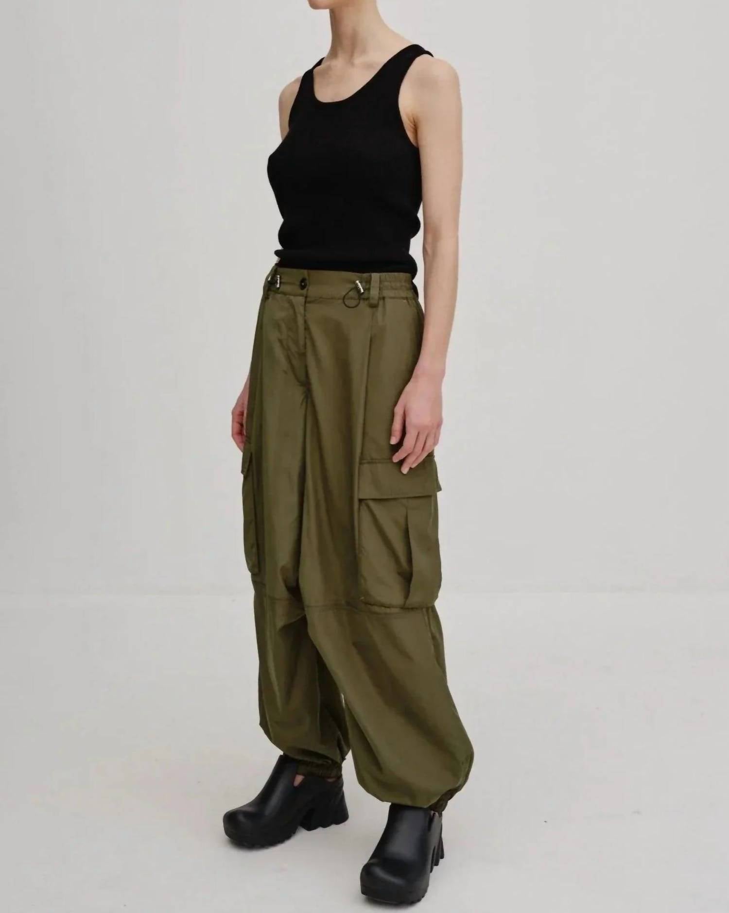 Эти брюки прямого кроя одновременно стильные и удобные. Мы уже говорили, что посадка идеальна? Представляем брюки Herskind Cargo Parachute Pants свежего зеленого оттенка, предлагающие современную интерпретацию классического силуэта. Эти брюки с высокой посадкой имеют свободный крой, зауженные книзу штанины и утягиваются на щиколотке для создания элегантного силуэта. Изготовленные из 100% переработанного полиэстера, они имеют практичную застежку на пуговицы и несколько карманов для дополнительной функциональности. Рекомендации по уходу включают машинную стирку.