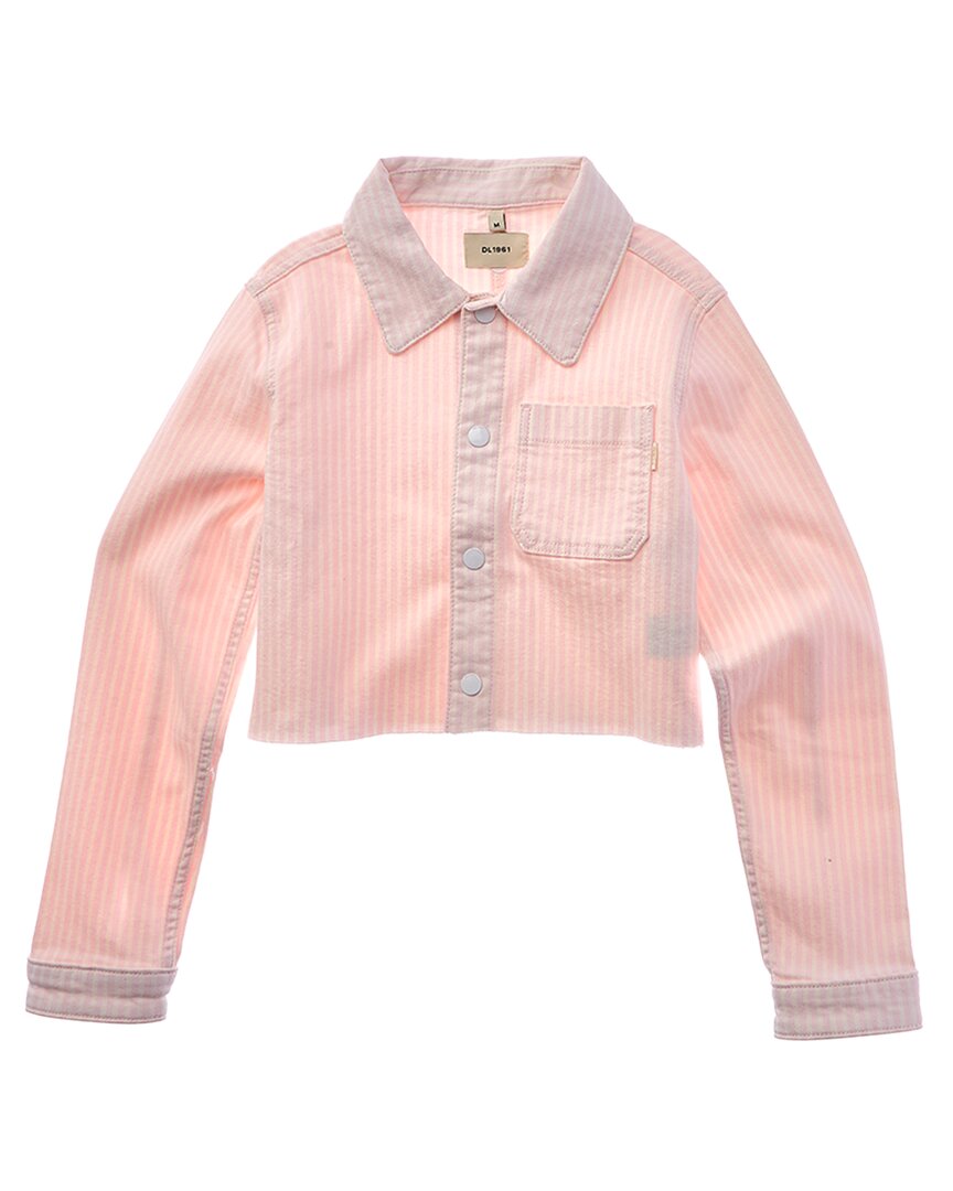 Представляем куртку Manning DL1961 - стильную верхнюю одежду для вашей малышки. Эта куртка в розовую полоску с отложным воротником, нагрудным карманом, манжетами на кнопках и необработанным краем выглядит модно. Куртка изготовлена ​​из 99% хлопка и 1% лайкры, она удобная и простая в уходе, так как допускает машинную стирку. DL1961 - бренд, известный своим экологичным денимом, и эта импортная куртка Manning - не исключение. Добавьте стильный штрих в гардероб вашего ребенка с этой стильной и универсальной курткой.