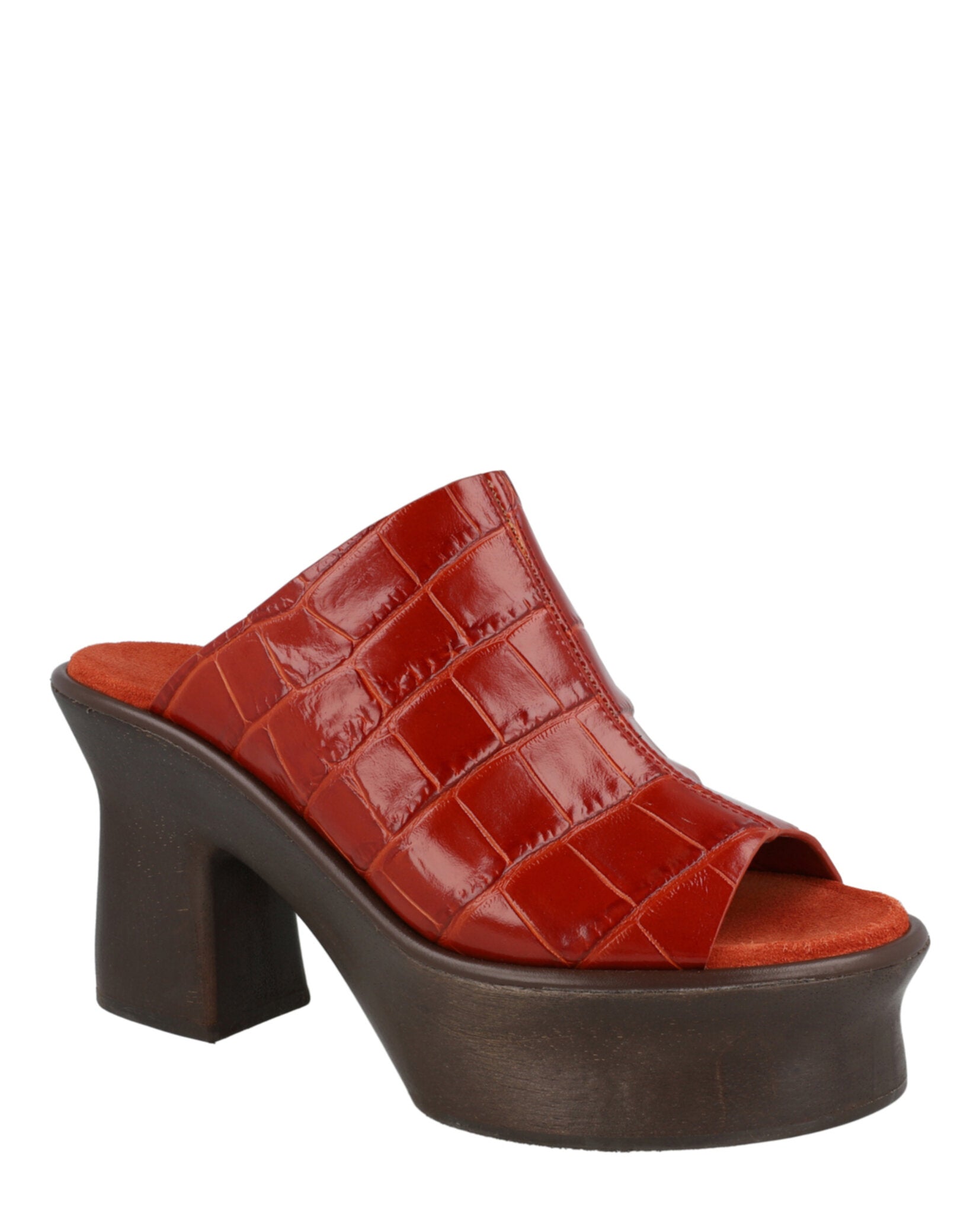 Мюли Samanta на платформе с тиснением под крокодила Salvatore Ferragamo, Rust