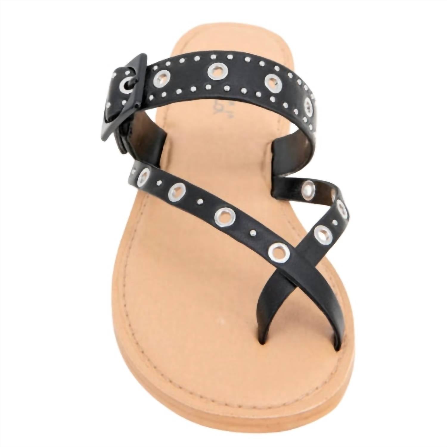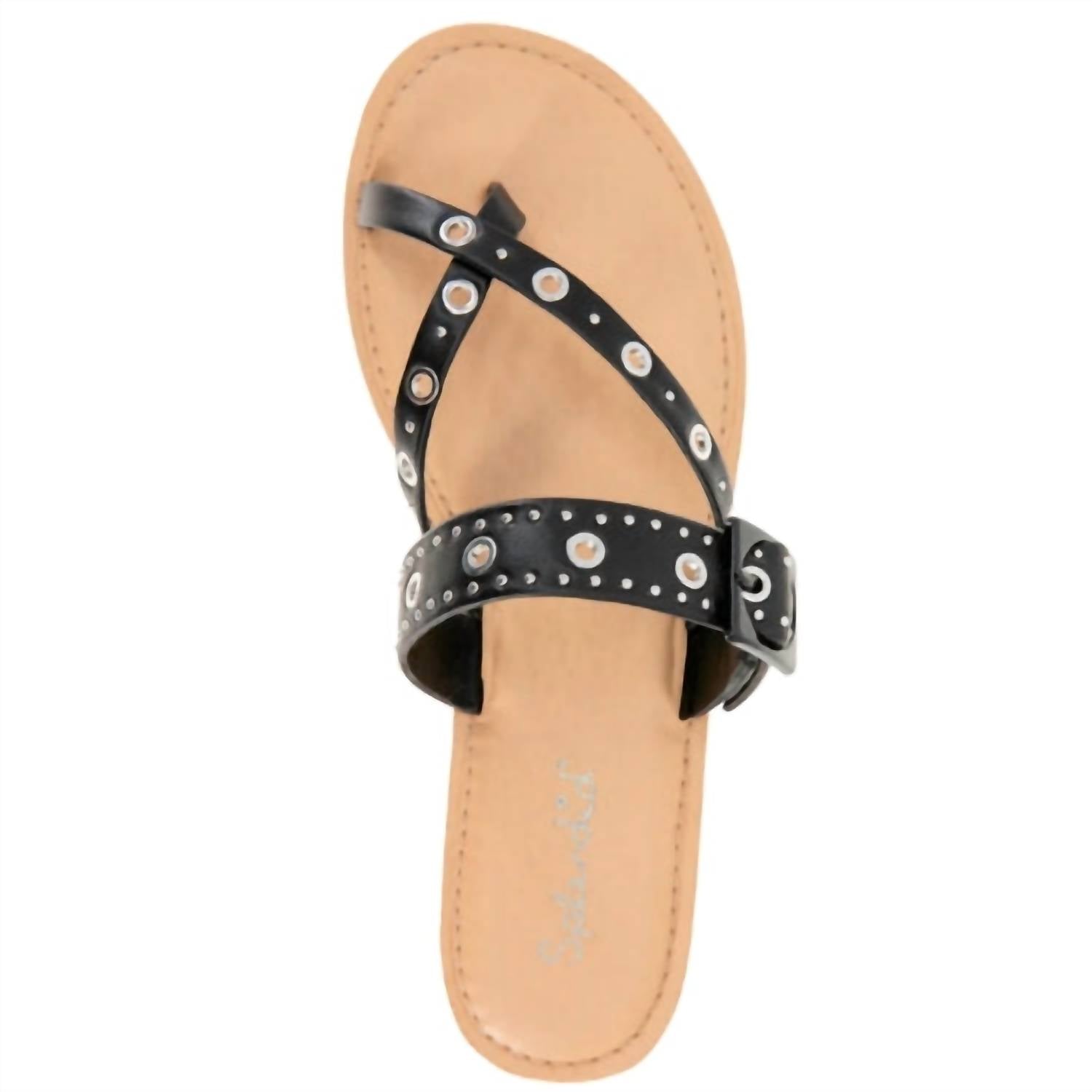 Эти сандалии подойдут как для бранча, так и для ужина, и для всего, что между ними. Дополните свой летний гардероб женскими сандалиями Sutton Studs от Splendid, которые идеально сочетают в себе бохо-шик и индустриальный стиль. Верх сандалий выполнен из кожи, украшенной металлическими заклепками и люверсами. Сандалии оснащены петлей для большого пальца и регулируемым ремешком на мыске для надежной посадки. Стильный черный цвет, закругленный носок и плоский каблук высотой 0,39 дюйма идеально подходят для отпуска и повседневных прогулок. Эти сандалии добавят непринужденного стиля простым джинсам и футболкам.