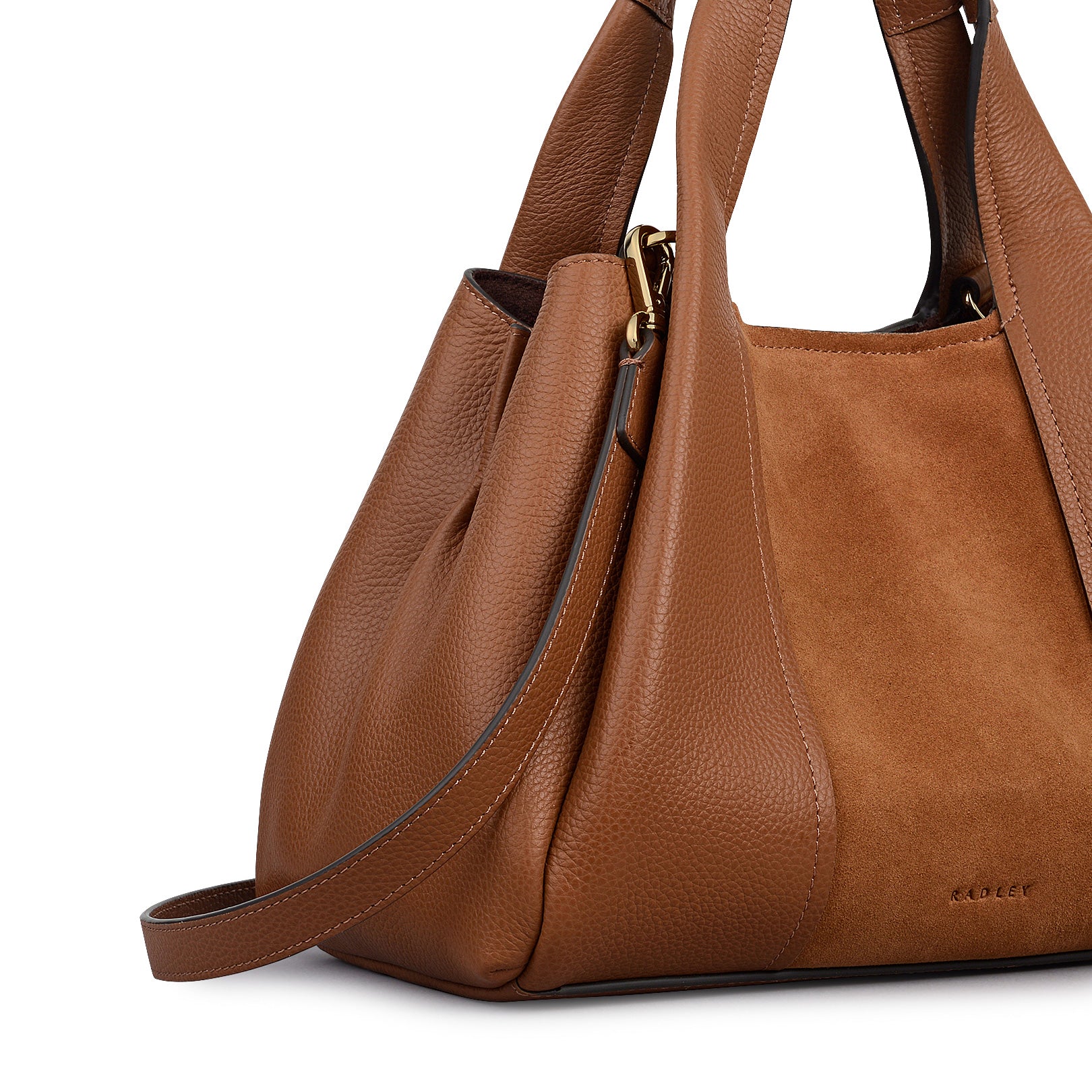 Сдержанная элегантность воплощена в сумке Stanhope Square. Складные ручки из зернистой кожи переходят в плиссированные вставки на объемной итальянской замше, а подкладка из искусственной замши делает ее столь же роскошной внутри.
