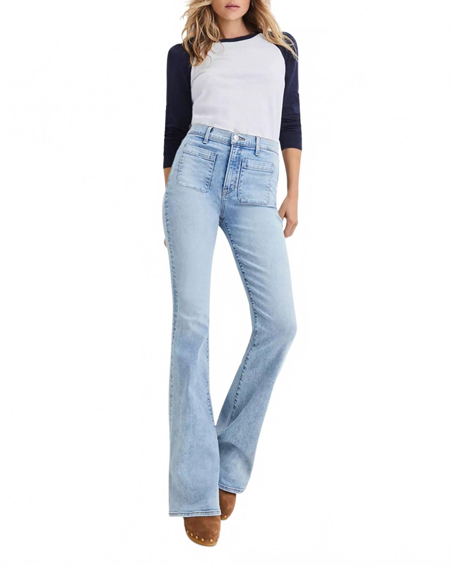 Джинсы Florence Flare от Veronica Beard в цвете Cape станут стильным дополнением к вашему гардеробу благодаря сочетанию 98% хлопка и 2% полиуретана, идеально подходящему для непринужденного стиля. Высокая талия и облегающий крой, переходящий в расклешенные штанины, создают уверенный силуэт. Эти джинсы с легкой потертостью на молнии и карманами идеально подойдут для весеннего образа в стиле преппи, идеально подходящего для праздничных вечеринок. Инструкция по уходу: машинная стирка, без особых рекомендаций по сушке. Характеристики: посадка 25 см (10,75 дюйма) и внутренний шов 86 см (34 дюйма).