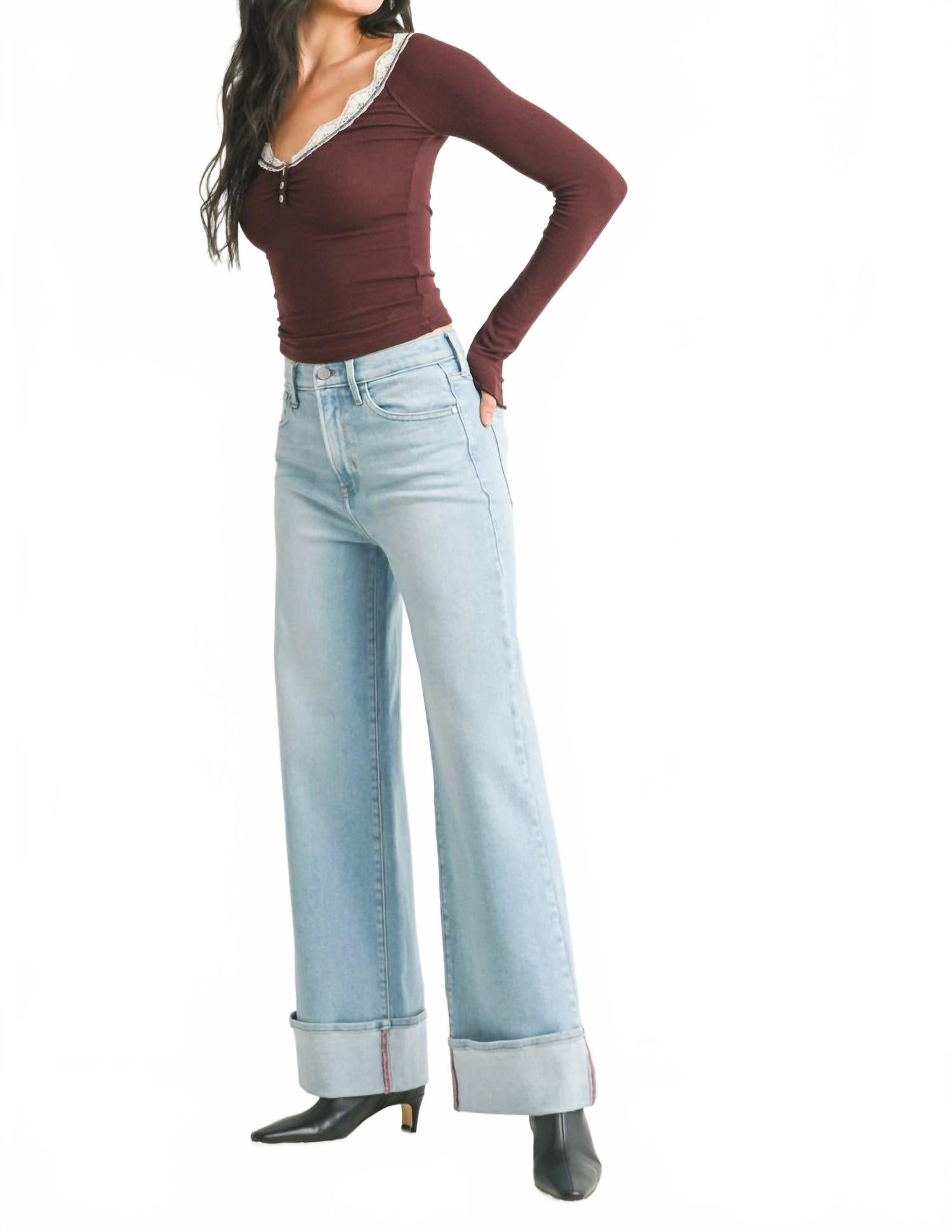 Представляем джинсы-палаццо с манжетами от JBD, идеально подходящие для преппи-образа в отпуске из легкого денима. Эти джинсы с высокой посадкой и широкими штанинами имеют свободный крой и идеально подходят для непринужденного летнего образа. Состав: 95% хлопка, 5% полиэстера и 2% спандекса. Изделия производятся в США и застегиваются на пуговицы. Уход: машинная стирка в холодной воде и сушка на горизонтальной поверхности, чтобы сохранить четкий рисунок и превосходное качество.