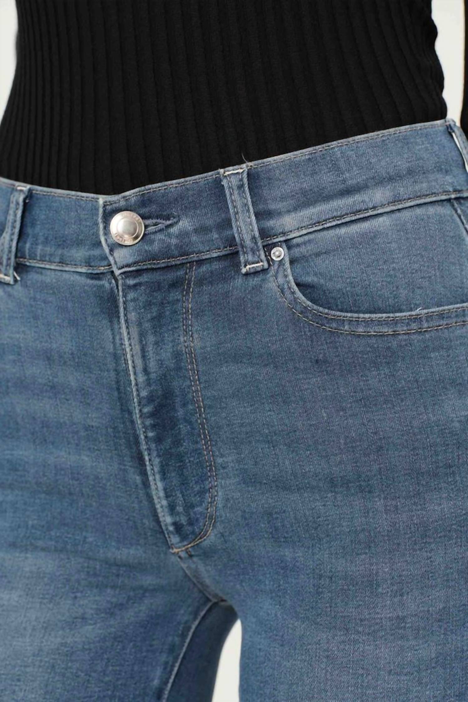 Привлекательный силуэт, который удивительно универсален. Мягкий эластичный деним, расклешенный крой, высокая посадка, мягкий оттенок индиго, легкое выцветание, серебристая фурнитура, разноцветная строчка, фигурный пояс, аккуратный подол, посадка: 10 дюймов, внутренний шов: 33 дюйма, ширина брючины: 17,25 дюйма, машинная стирка, технология Instasculpt с эластаном высокой степени удержания.