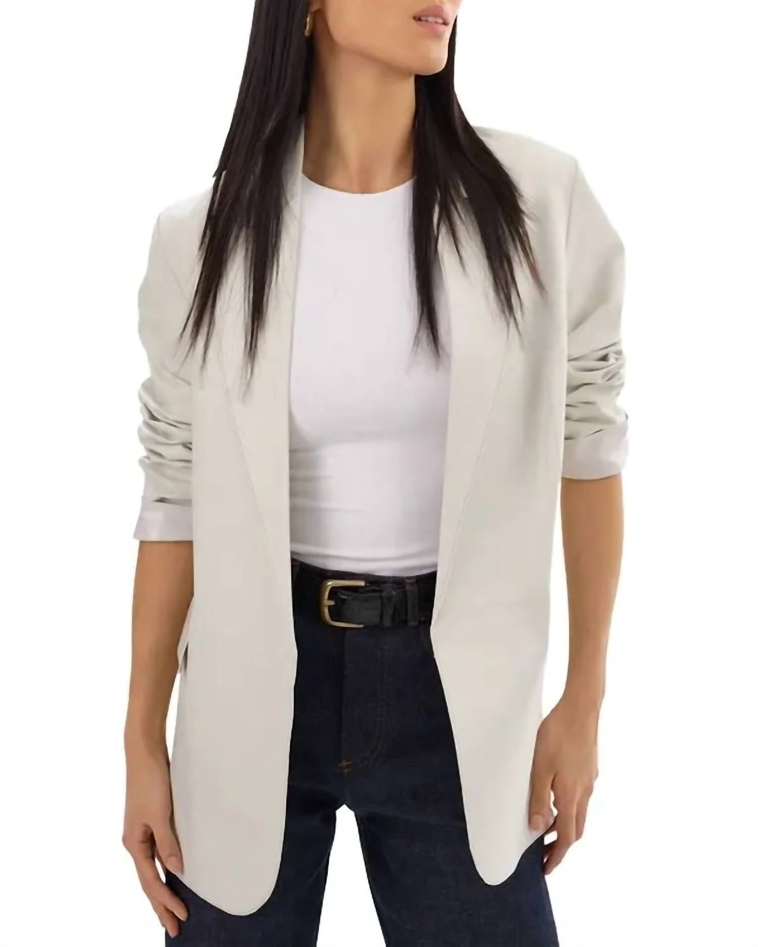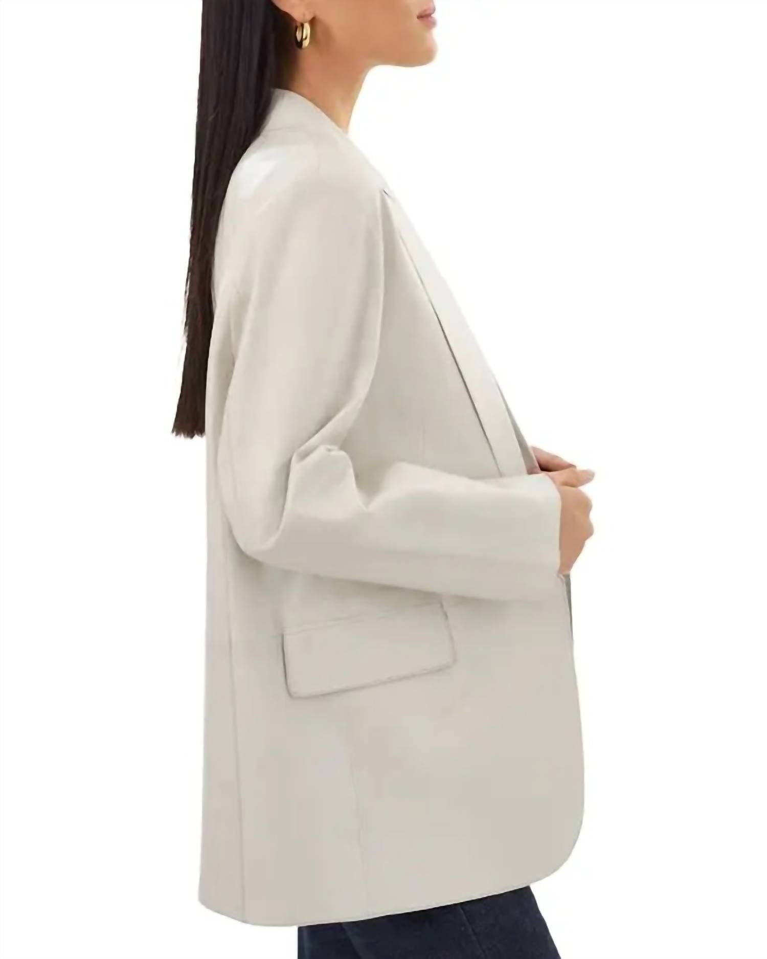 Этот универсальный блейзер можно носить в офис или сочетать с джинсами для создания более повседневного образа. Дополните свой праздничный гардероб кожаным блейзером Quirina от LAMARQUE - стильной и минималистичной моделью в зимне-белом цвете. Этот кожаный блейзер с длинными рукавами и классическим воротником идеально подходит для создания элегантного образа на День благодарения. Однотонный узор и застежка на липучке создают гармоничное сочетание стиля и удобства. Этот пиджак без подкладки идеально подходит для осенних мероприятий и дополнен удобными карманами для дополнительной практичности.