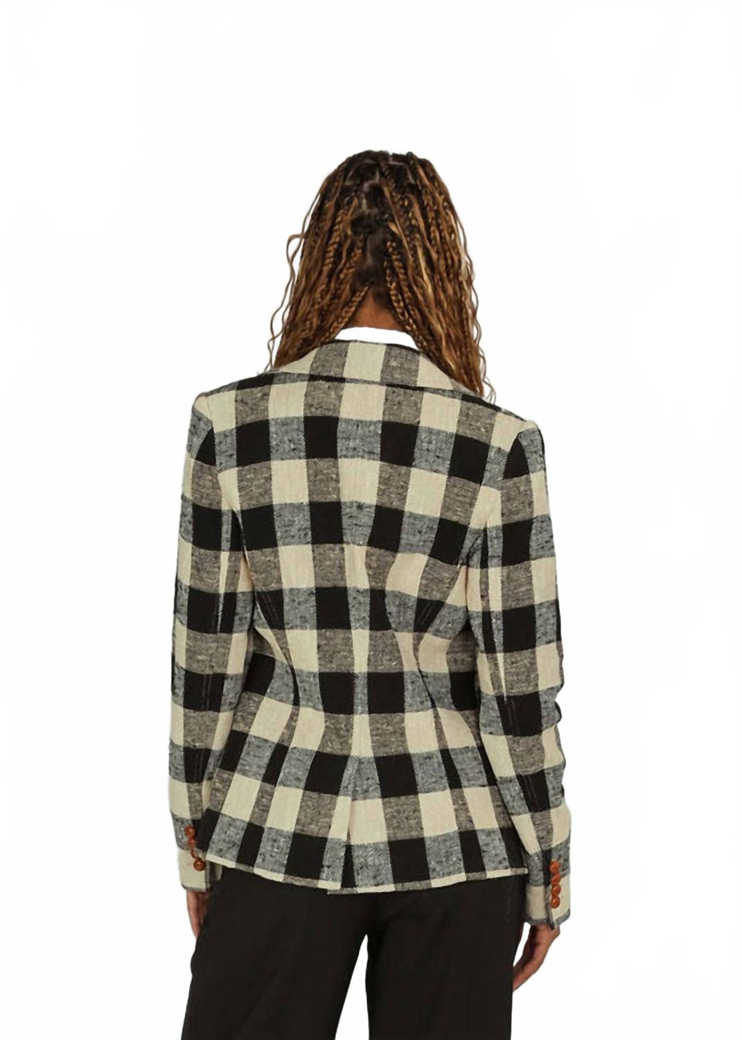 Блейзер Cut Away от Smythe станет стильным дополнением к вашему дорожному гардеробу благодаря изысканному черному клетчатому узору. Этот женский блейзер, произведенный в Канаде, имеет классический воротник и сшит из комфортной смеси 88% хлопка, 11% нейлона и 1% эластана. Он имеет длинные рукава, застежку на пуговицы и удобные карманы, а также подкладку для безупречного вида. Для сохранения идеального состояния рекомендуется химчистка.