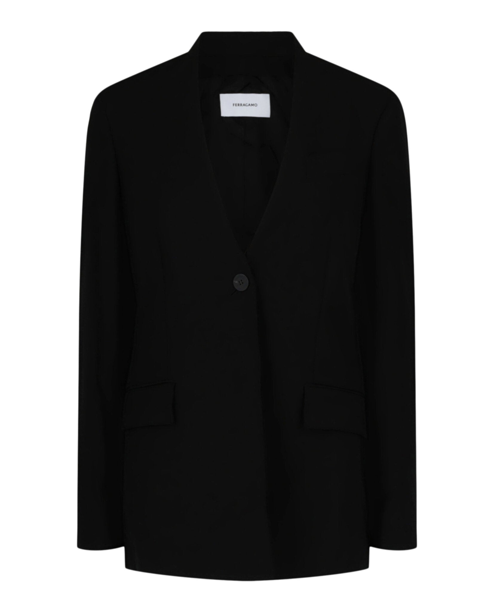 Однобортный шерстяной блейзер Salvatore Ferragamo, черный