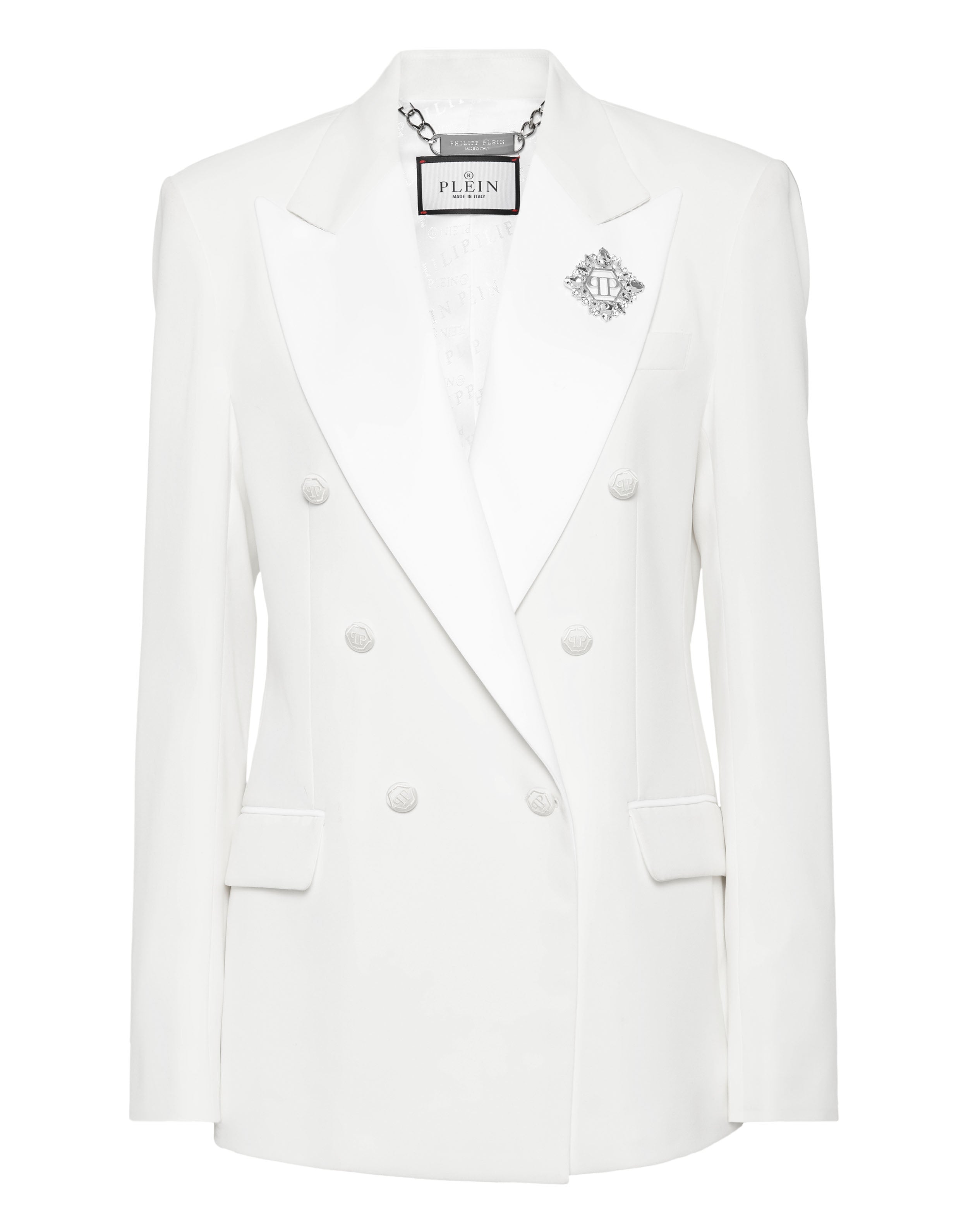 Двубортный блейзер из крепа и атласа Philipp Plein, белый