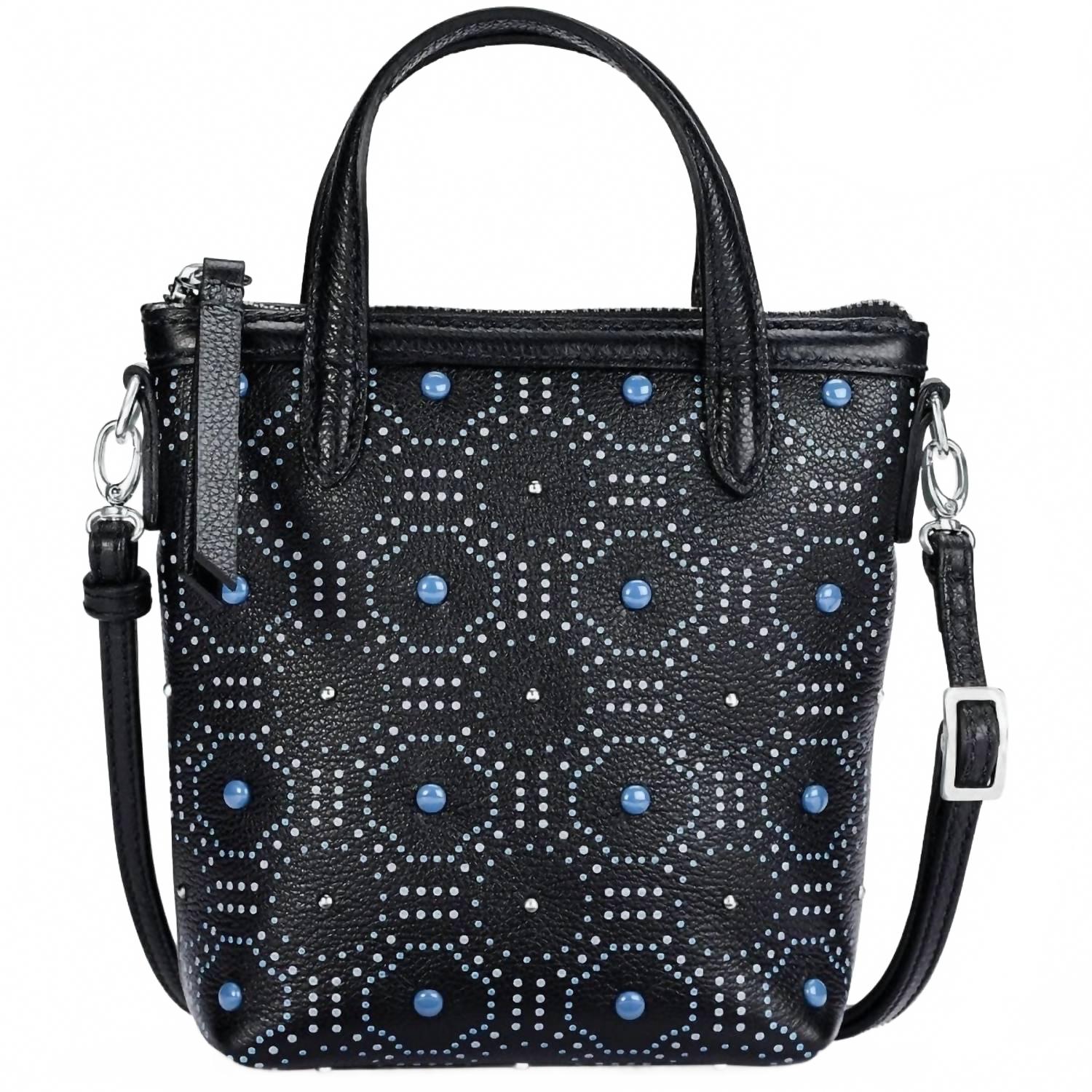 Представляем женскую сумку-тоут Bibi Mini от Brighton - изысканный аксессуар из высококачественной итальянской шагреневой кожи классического черного цвета. Эта легкая сумка-тоут универсальна благодаря съемному ремню через плечо, который добавит функциональности вашему образу. Размеры: ширина 15 см, высота 19 см, глубина 7 см. Подчеркните свой стиль с этой сумкой-тоут, вдохновленной дизайнерской эстетикой и геометрическим орнаментом.