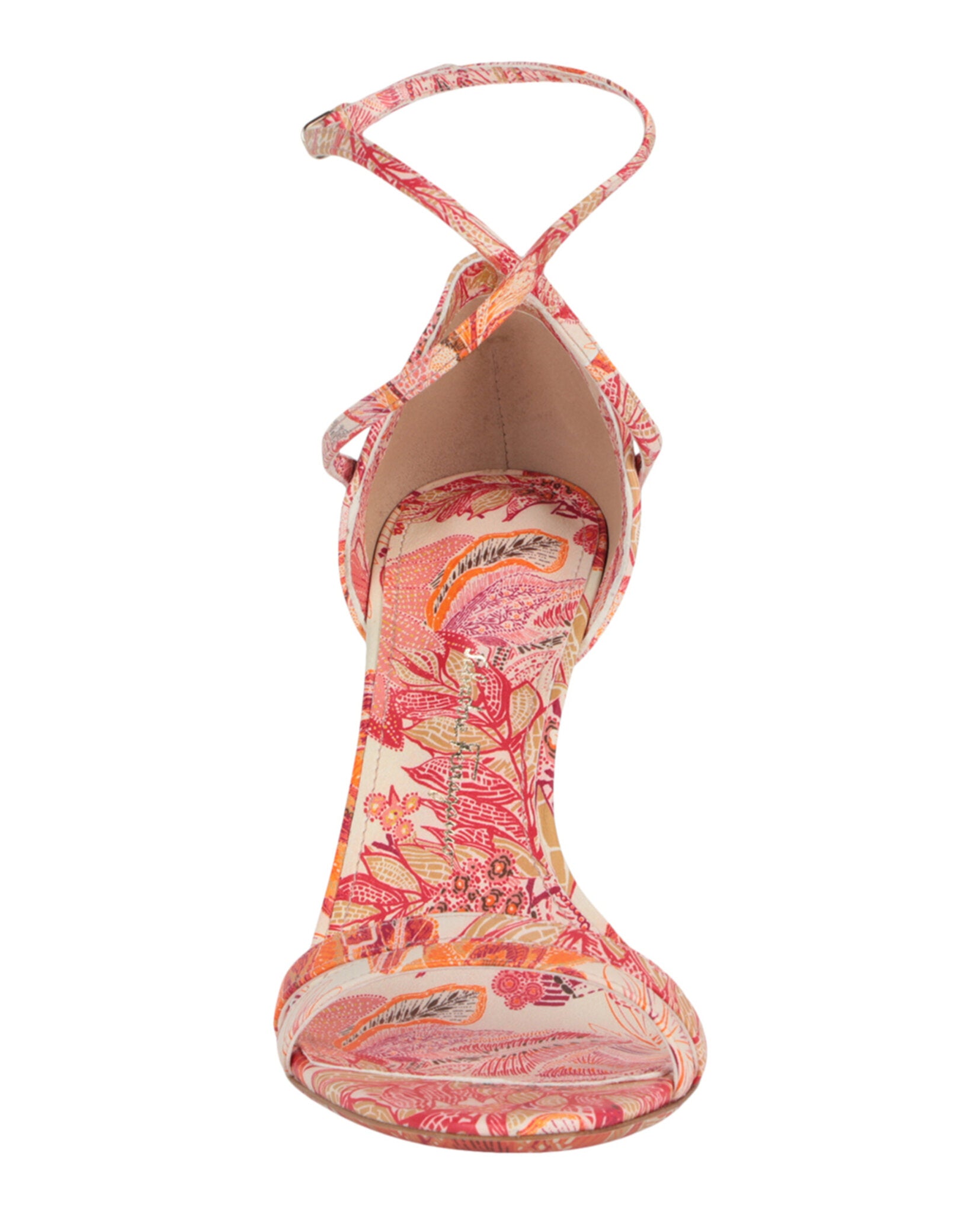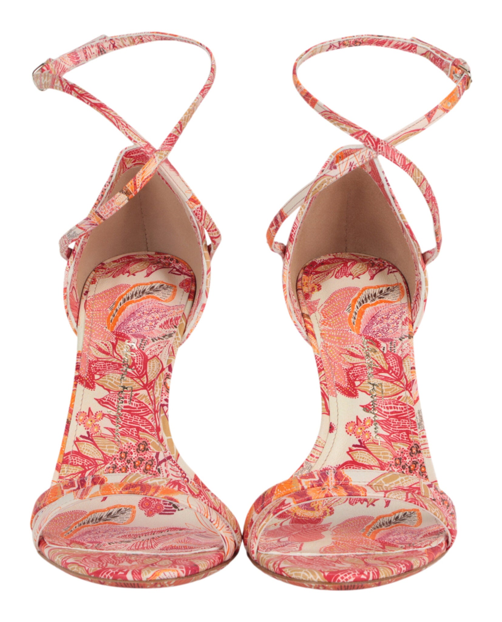 • Растительный принт по всей поверхности; Изящный логотип с украшением из кристаллов на пятке; Золотистая фурнитура