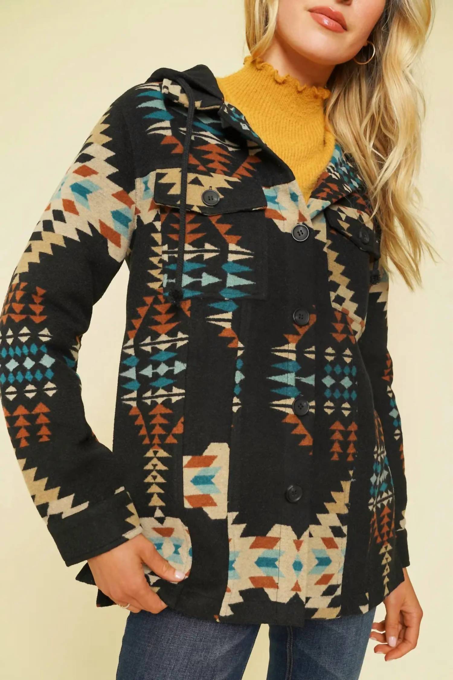 Представляем куртку Mystree Shirley с ацтекским принтом - стильный предмет гардероба в стиле бохо-шик, идеально подходящий для вашего зимнего гардероба. Эта куртка с узором имеет длинные рукава и капюшон на спине с кулиской, что делает ее идеальным вариантом для отдыха в непринужденной обстановке или празднования Дня благодарения. Куртка, созданная с вниманием к деталям, дополнена удобными нагрудными карманами с клапанами и застежкой на пуговицы.