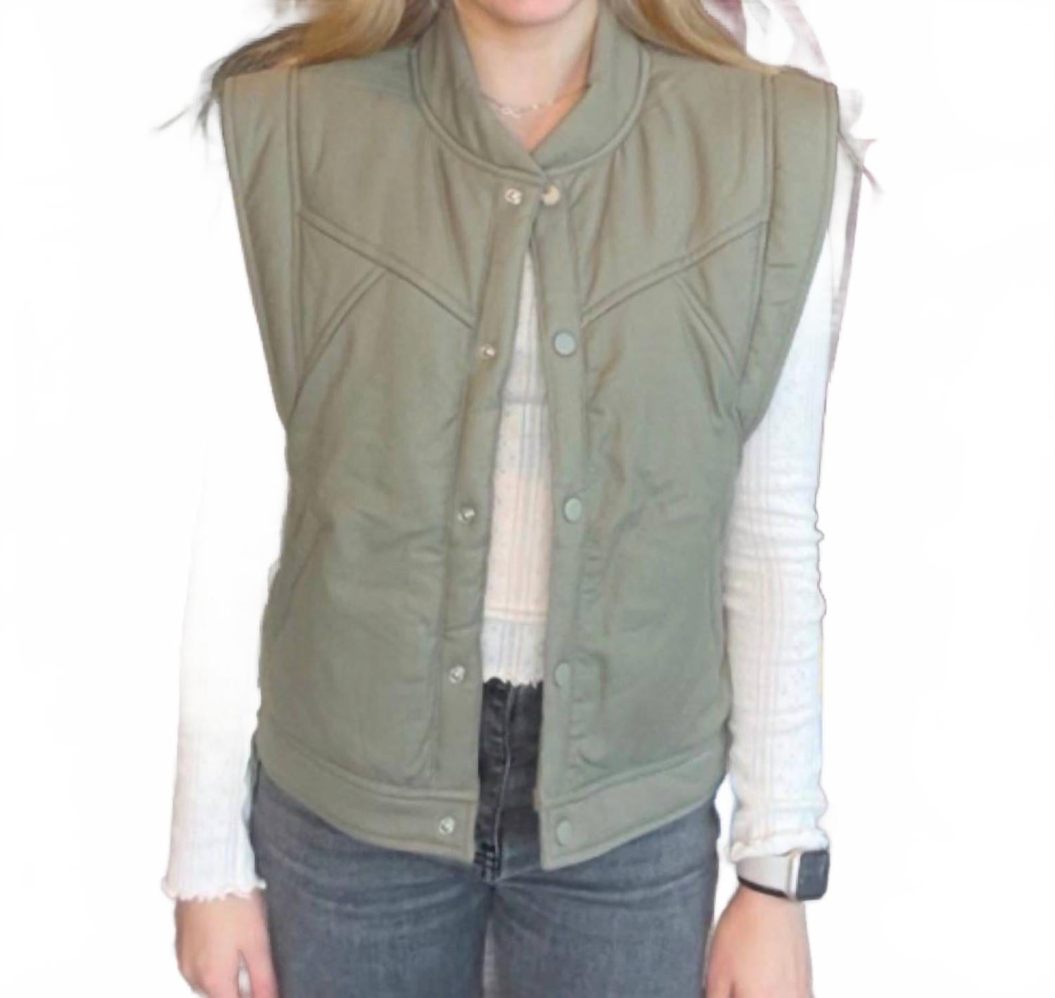Представляем жилет Larken Vest от ABLE - стильную и универсальную модель с текстурированной оливковой отделкой. Этот жилет без рукавов идеально подходит для многослойной одежды благодаря удобной застежке на кнопку и практичным карманам. Круглый вырез горловины и подкладка идеально подойдут для создания уюта зимой. Рекомендации по уходу: машинная стирка и сушка на веревке.