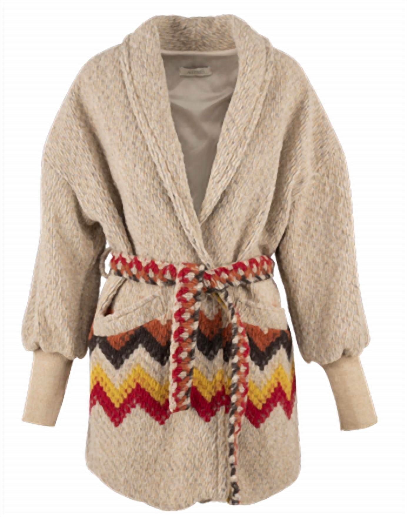 Милая, повседневная и удобная. Эта куртка просто необходима. Представляем куртку Bonaroo Belt от Astrid - стильное и функциональное дополнение к вашему повседневному гардеробу. Эта бежевая комбинированная куртка свободного кроя с длинными рукавами и удобными карманами идеально подходит для многослойного ношения. Изготовленная из ткани, состоящей из 70% хлопка и 30% полиэстера, она имеет удобную застежку и завязку для регулировки по фигуре. Изготовлена в Китае. Уход: ручная стирка, химчистка или машинная стирка в холодной воде (по отдельности). Сушить в разложенном виде и избегать отбеливания.