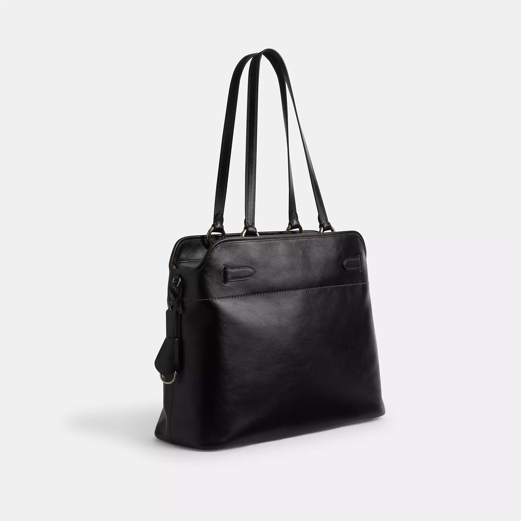 Блестящая гладкая кожа. Внутри застежка-молния и многофункциональные карманы. Тканевая подкладка на молнии. Ручки с глубиной 10 1/2 дюйма. Четыре защитные ножки у основания. Размеры: 16 (Д) x 11 1/2 (В) x 5 1/4 дюйма (Ш). Сумка-шоппер Easton, черная.