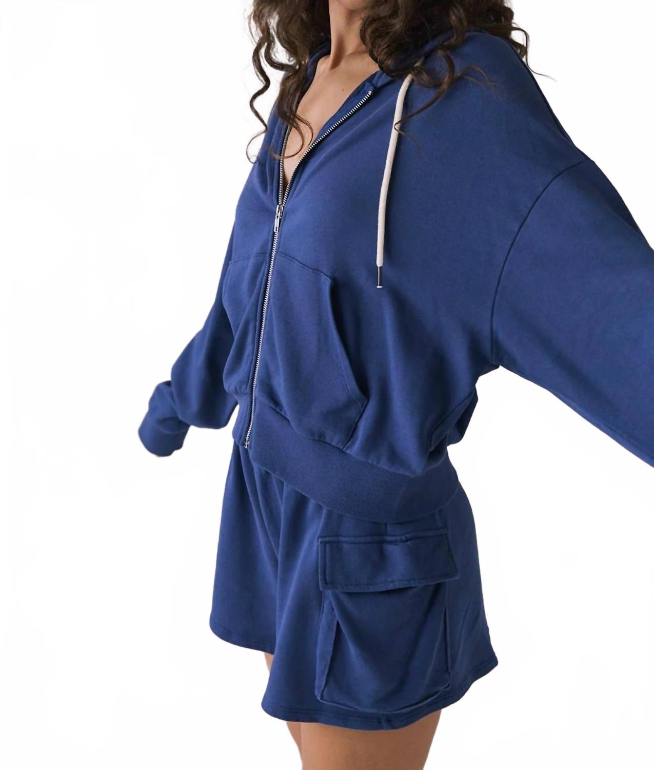 Милая, повседневная и удобная. Эта куртка просто необходима. Представляем толстовку на молнии Abilene Honest от Chaser - стильное дополнение к вашему спортивному гардеробу в цвете индиго. Эта повседневная куртка с длинными рукавами выполнена из 100% хлопка и обеспечивает непревзойденный комфорт в спортивном стиле. Она оснащена практичной застежкой-молнией и карманами, идеально подходящими для занятий фитнесом или тренировок. Эта толстовка легко стирается в стиральной машине и станет вашим незаменимым аксессуаром для прогулок. Рост модели - 178 см, размер S.