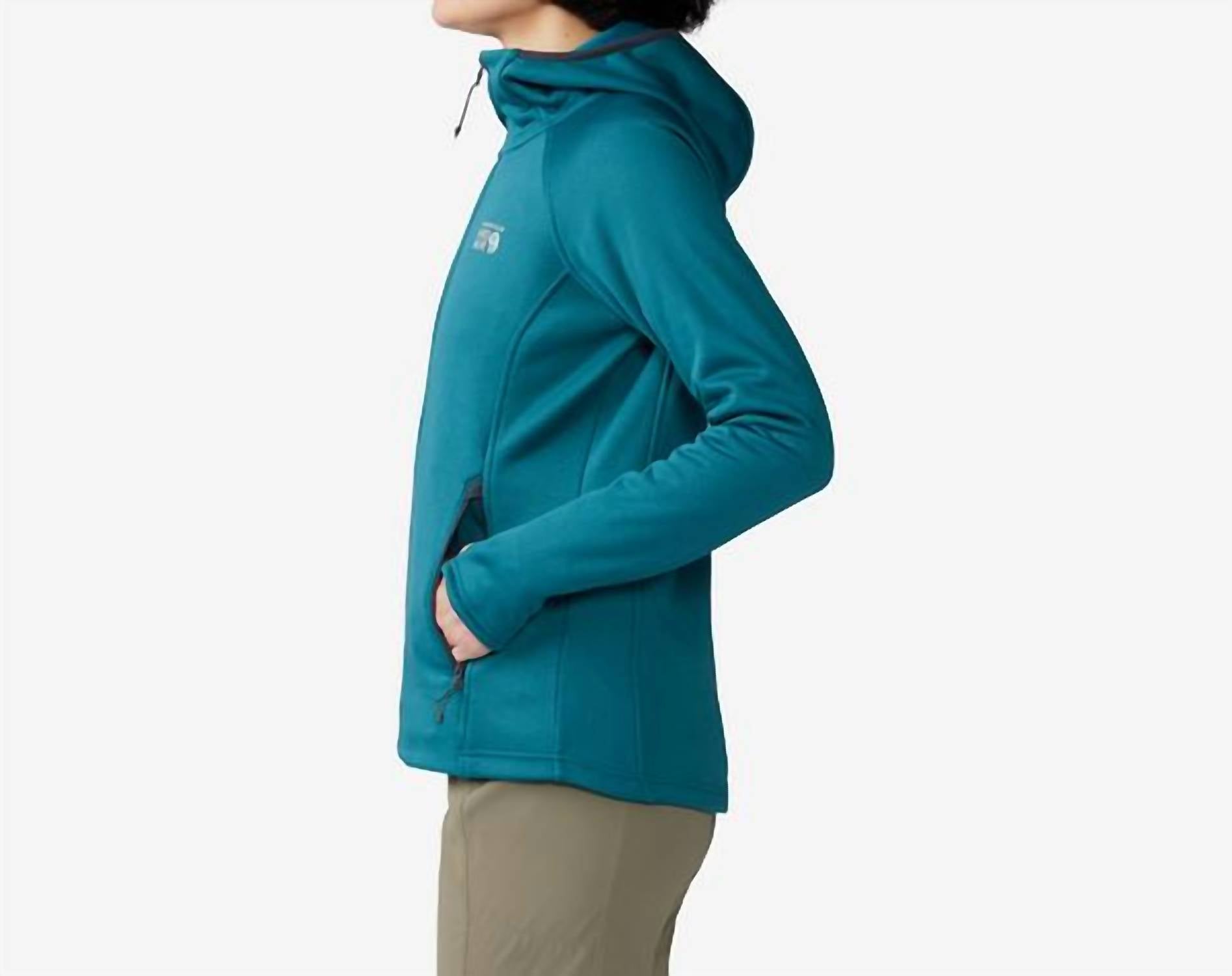 Толстовка Sendura Hoody от Mountain Hardwear - незаменимый предмет женской одежды для активного отдыха весной, идеально подходящий для кемпинга. Эта толстовка цвета Jack Pine Heather с однотонным узором имеет длинные рукава и удобную застежку-молнию для комфортного надевания. Изготовленная из прочного материала (94% переработанного полиэстера и 6% эластана), она практична и стильна благодаря удобным карманам и преппи-дизайну.