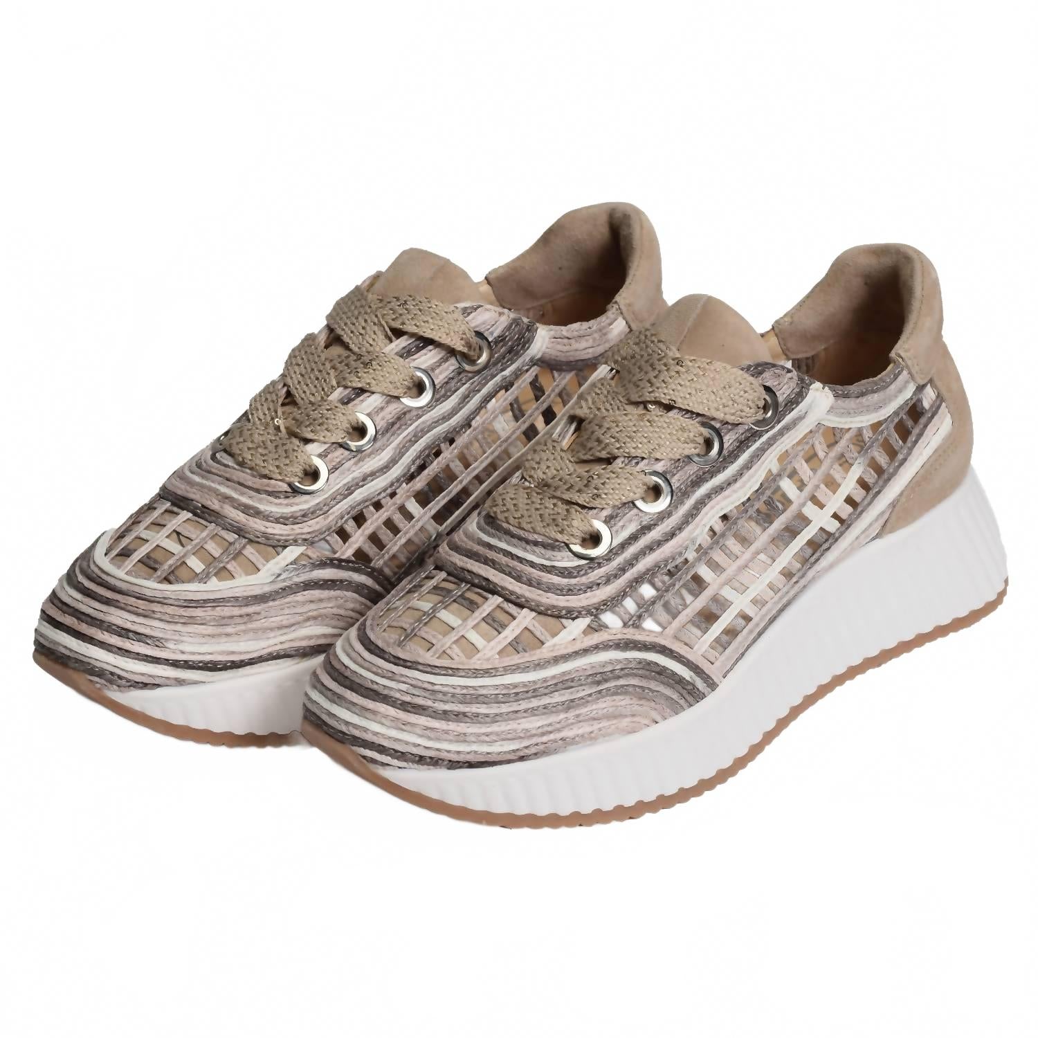 Наслаждайтесь каждым днем ​​в этих очаровательных кроссовках. Представляем женские кроссовки Ardi из рафии от Softwaves - идеальный спутник для праздничных вечеринок с нотками уличной моды. Эти кроссовки песочного цвета с модным дизайном из рафии изготовлены из высококачественной кожи. Они идеально подходят для весны и станут стильным выбором для празднования Дня благодарения. Дополните свою коллекцию обуви этими современными и стильными кроссовками.
