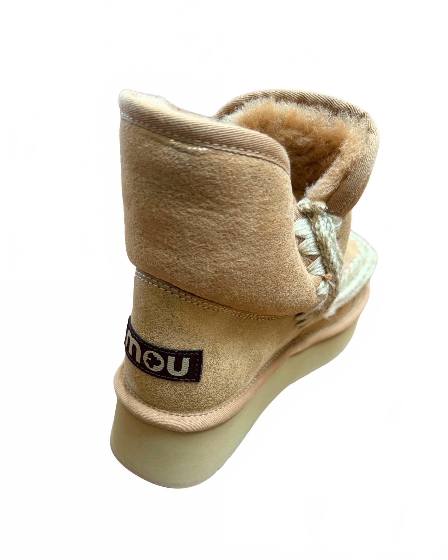 Поприветствуйте идеальные, самые универсальные ботинки. Высота до щиколотки позволяет легко перенести этот стиль с дня на вечер. Носите их с любимыми узкими джинсами и футболкой для более непринужденного образа или сочетайте их с любимым мини-платьем и курткой для вечерней прогулки по городу. Представляем женские мини-сапоги Eskimo Platform Boot от Mou, минималистичную базовую вещь в цвете Dust Savana, созданную для вашего весеннего гардероба. Эти ботинки, изготовленные вручную вручную, имеют роскошную двустороннюю конструкцию из овчины с шерстяной отделкой, связанной крючком, воплощая комфорт и стиль. Современный силуэт платформы дополняет прочная подошва из ЭВА и резины, обеспечивающая устойчивость и долговечность. Высота - 18 см, с круглым носком, подходит для званых ужинов или любого стильного случая.