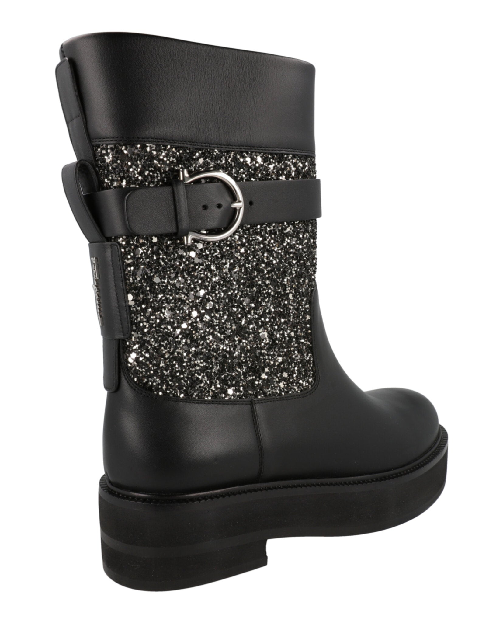 • Голенище с блестками; Детали с пряжкой; Наклейка «Ferragamo» сзади; Серебристая пряжка Gancini