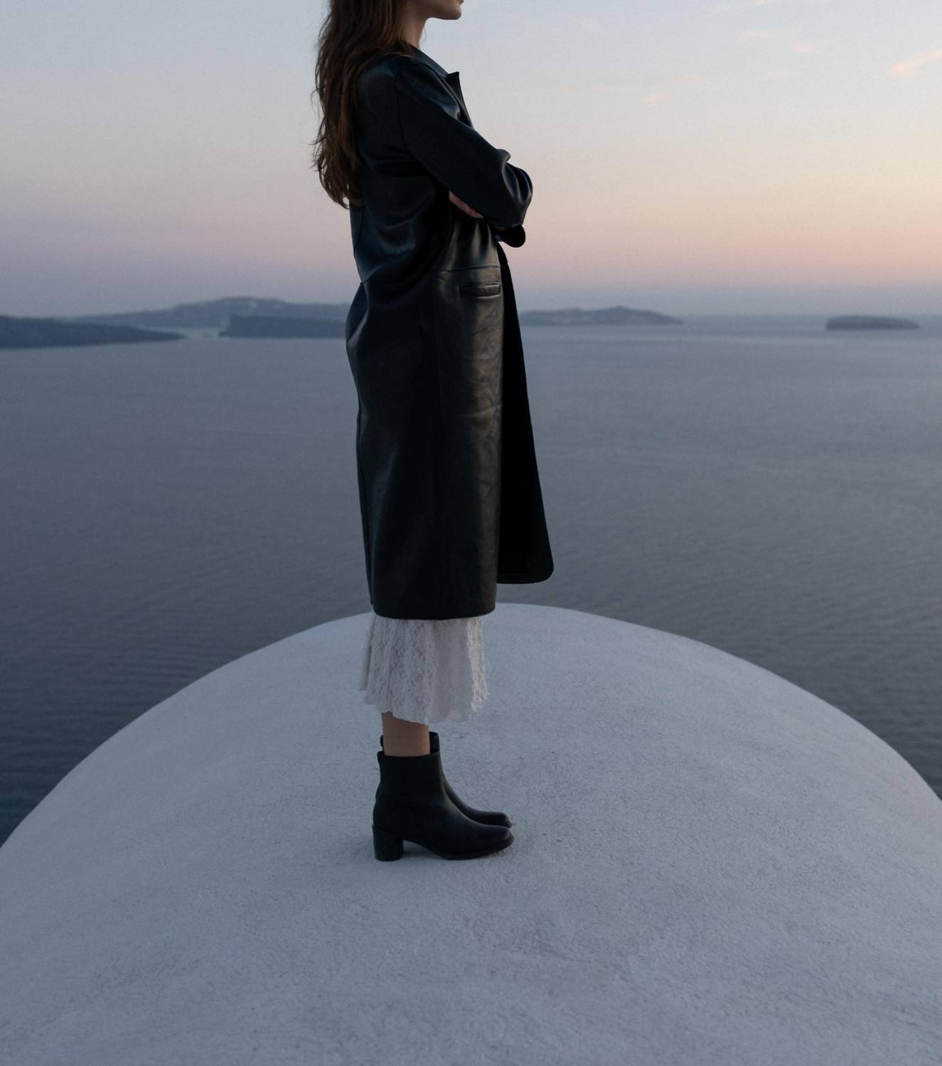 Женский тренчкот, искусно изготовленный из 55% полиэстера и 45% полиуретана, создает текстурированный и стильный образ. Длинные рукава и длина до середины голени обеспечивают одновременно защиту и элегантность. Застежка на пуговицы и карманы обеспечивают дополнительное удобство. Модное черное пальто выполнено из гладкой искусственной кожи, что создает впечатление безупречного качества. Рекомендуется химчистка.
