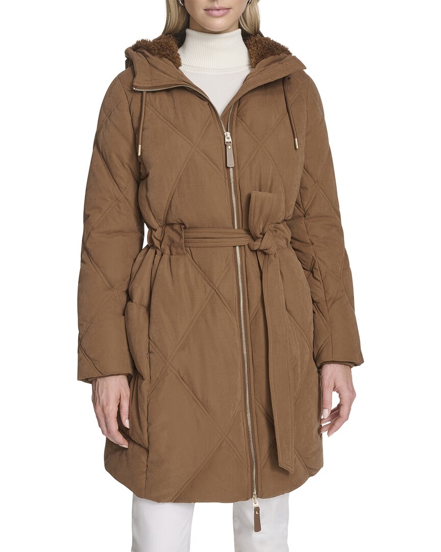 Оставайтесь в тепле и стильно в стеганой парке Andrew Marc Hollis. Эта парка с поясом выполнена из замшевой ткани с двойным ромбовидным стеганым узором, что придает ей уникальный и шикарный вид. Подкладка из искусственного меха овчины на внутреннем капюшоне добавляет дополнительный слой уюта, в то время как тональная строчка и отделка, ребристая вязка внутри штормовых манжет и отделка из искусственной кожи и металла придают этой куртке нотку роскоши. С наполнителем из искусственного пуха и застежкой-молнией по центру спереди эта парка одновременно модная и функциональная. 2 внутренних кармана на молнии и внутренний карман обеспечивают дополнительное место для хранения ваших необходимых вещей. Изготовленная из материала верха из 90% полиэстера и 10% нейлона, подкладки из 100% полиэстера, подкладки капюшона из искусственного меха и наполнителя из 100% полиэстера, эта парка проста в уходе благодаря инструкциям по машинной стирке. Эта импортная парка Andrew Marc длиной около 36 дюймов от плеча до подола станет обязательным дополнением к вашей коллекции верхней одежды.
