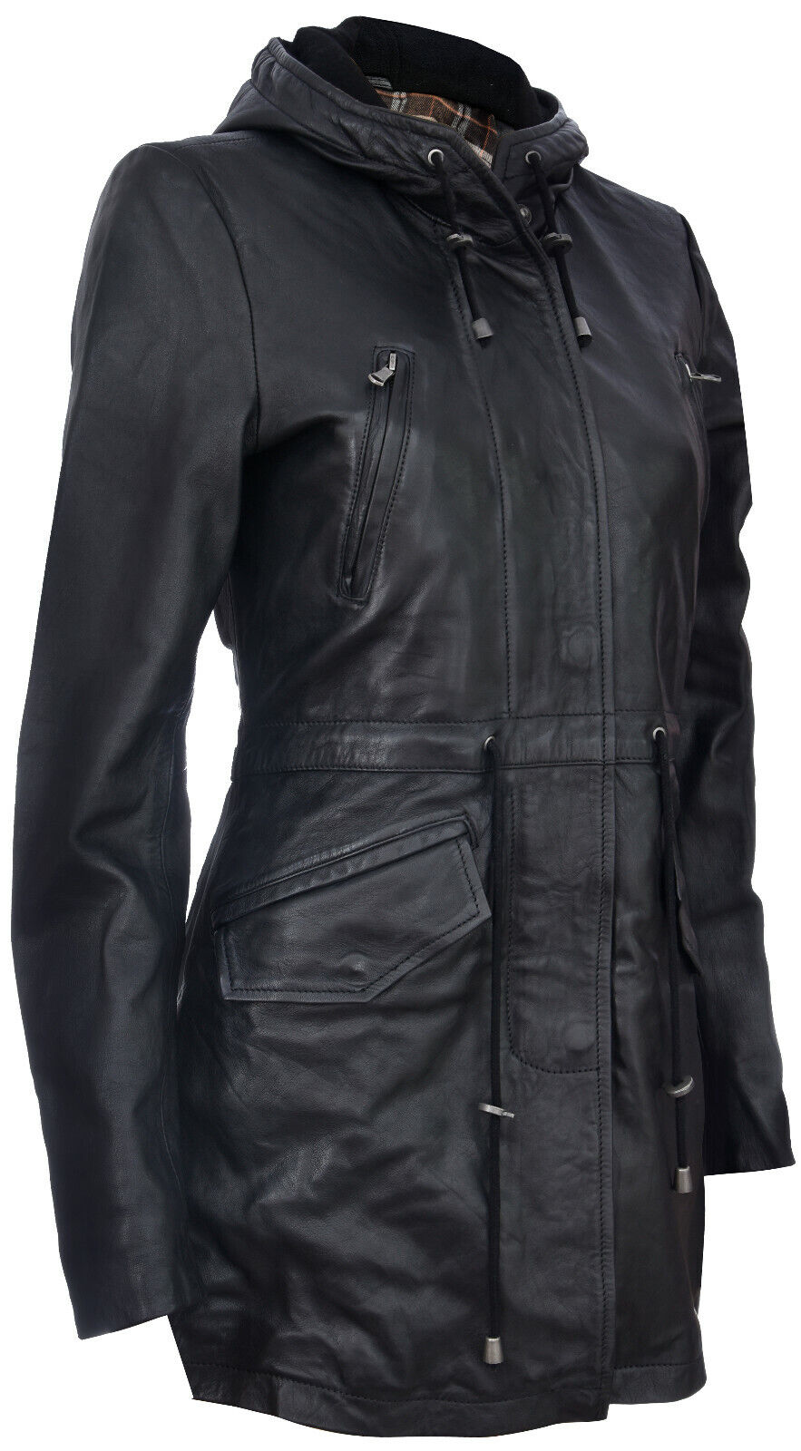 Ощутите изысканность и тепло в этой элегантной зимней куртке. Ее внешний дизайн излучает утонченное очарование, идеально подходящее для тех, кто ищет элегантность в холодную погоду. Внутри уютная клетчатая подкладка обеспечивает тепло и комфорт, а пояс дополняет уют. Передняя молния скрыта под застегивающейся на пуговицы гульфиком, что придает ей чистую и элегантную эстетику. Основные дизайнерские особенности - Изготовлена из 100% высококачественной ультрамягкой кожи наппа для исключительного качества и комфорта. Оснащена потайной застежкой-молнией YKK и регулируемым капюшоном для повышенной защиты от непогоды. Имеет четыре внешних кармана со скрытой фурнитурой, сохраняя чистый вид куртки. Мотив с кулиской на передней части куртки добавляет нотку стиля и универсальности. Эта куртка гармонично сочетает в себе стиль и функциональность, что делает ее отличным выбором для тех, кто ценит как изысканность, так и тепло в своей зимней одежде. Украсьте свой зимний гардероб этой исключительной вещью.