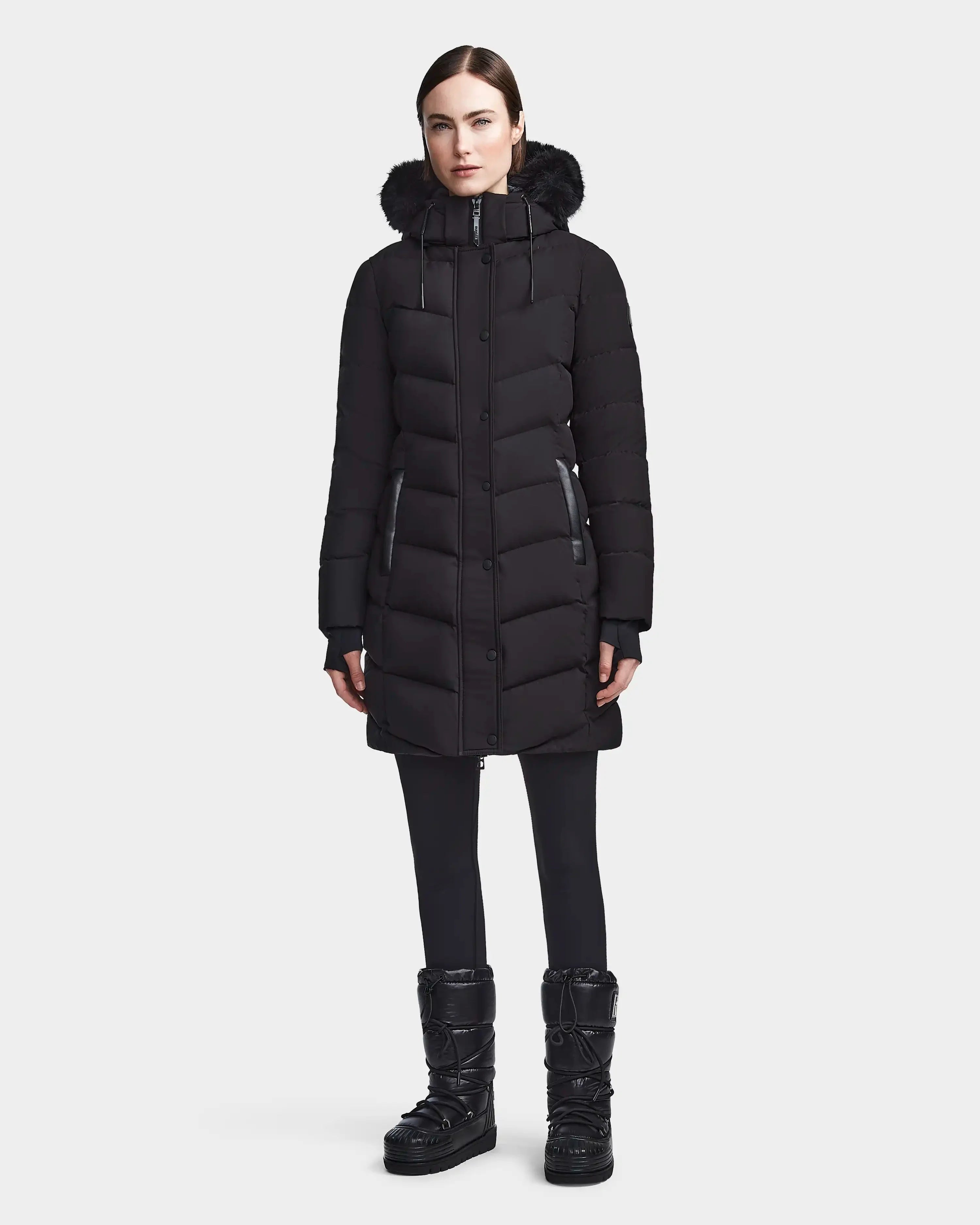 Созданная для будущего, модель ELISA от RUDSAK отличается экологичным дизайном: от матового эластичного внешнего слоя из переработанных материалов до подкладки и отделки из переработанной кожи. Этот женский стеганый пуховик также утеплен пухом премиум-класса, сертифицированным RDS, полученным из этичных источников и защищающим от холода до -25°C. Благодаря съемному капюшону, внутренним лямкам для удобной переноски и манжетам для защиты от ветра этот пуховик идеально подходит для стильной зимы. Он также дополнен полностью съемной вставкой из искусственного меха для универсальности. Сделайте ELISA своим незаменимым приобретением этой зимы.