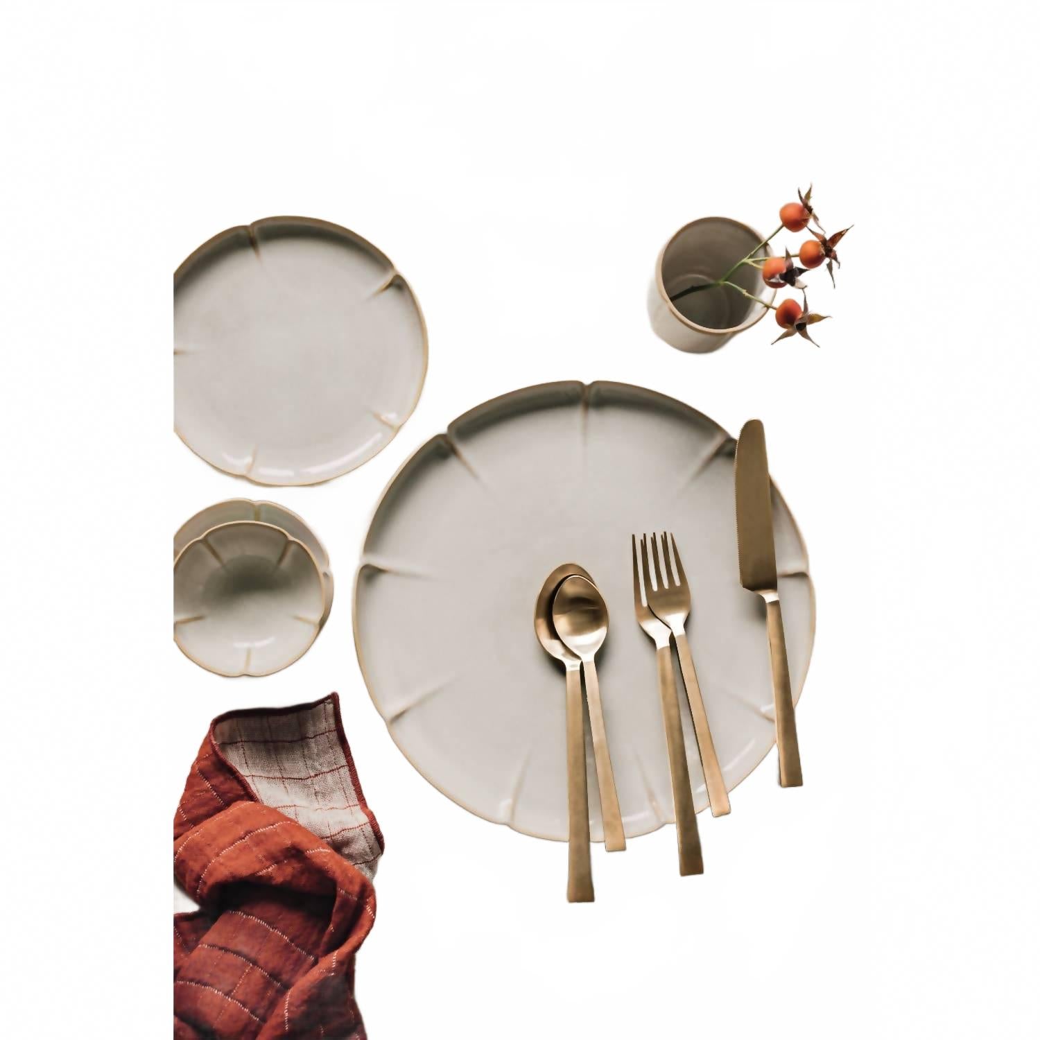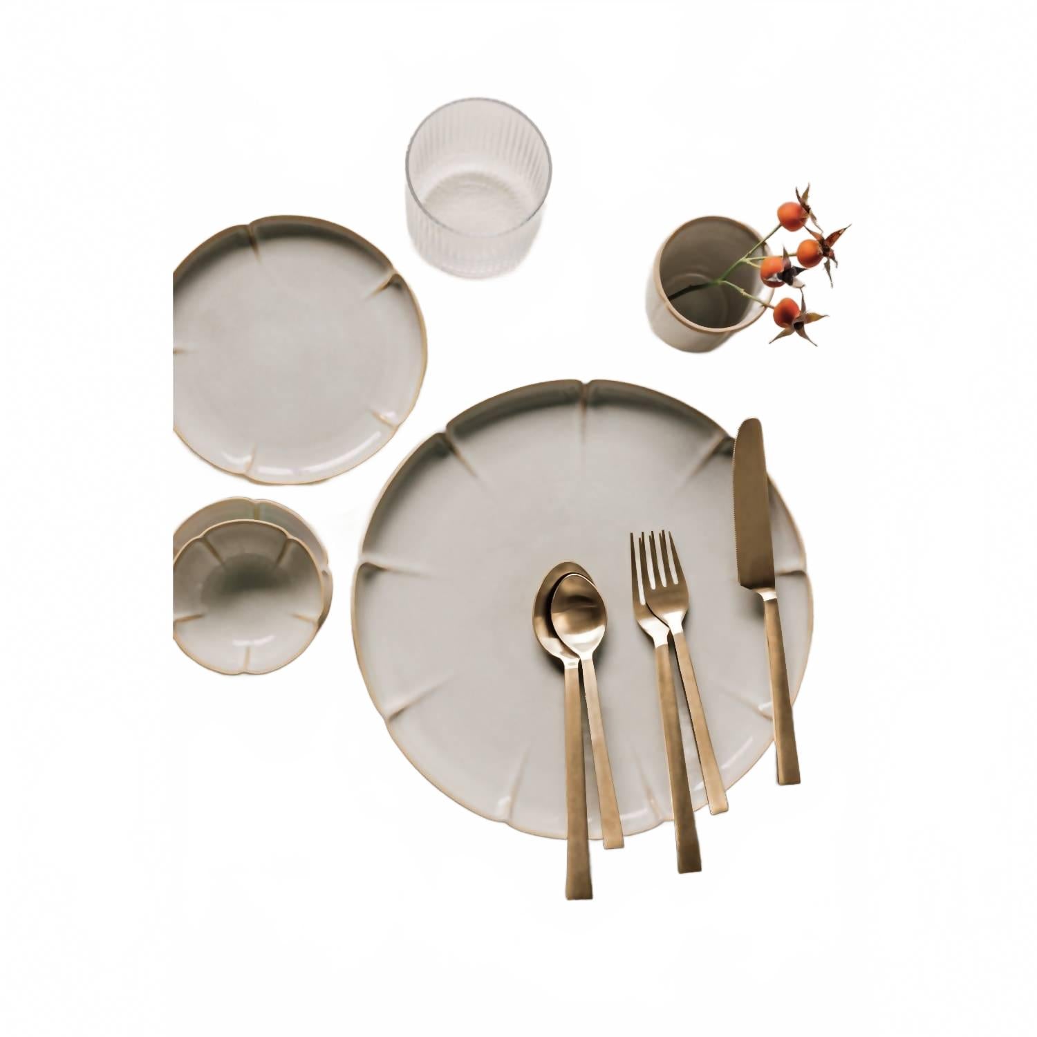 Поднимите свои обеды на новый уровень с набором столовых приборов Matte Gold Edge от Danica Heirloom. Этот элегантный набор с плоскими краями, излучающий простоту и изысканность, полностью изготовлен из нержавеющей стали и включает предметы размером 8,75 дюйма (Д), 8 дюймов (Д), 6,75 дюйма (Д), 7,25 дюйма (Д) и 6 дюймов (Д), что делает его универсальным дополнением к любой сервировке стола. За этими элегантными столовыми приборами легко ухаживать: их можно мыть в посудомоечной машине, что гарантирует их долговечность и блеск.