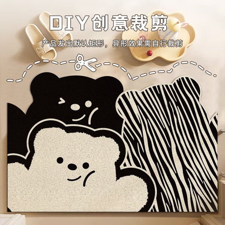 Dajiang Ковер 100х120 см для прихожей Silk Loop, грязеотталкивающий, с рисунком Cartoon Bear