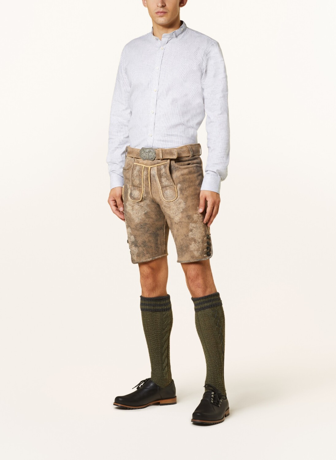 Бренд: Gottseidank Цвет: кремовый Покрой: Slim Fit Воротник-стойка с перекладиной Широкая кокетка сзади Нагрудный карман Планка с накладными пуговицами Регулируемая по ширине манжета на одной пуговице Дизайн с тонкими продольными полосками по всей поверхности Ощущение захвата Материал: 75% хлопок, 23% льна, 2% эластана Содержит нетекстильные части животного происхождения.