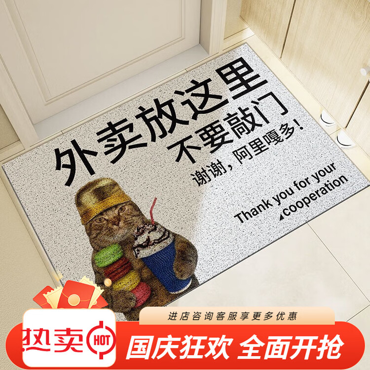 Budis Ковер 40х60 см из ПВХ, прихожая, с рисунком, не скользит, Takeout Cat [Loop]