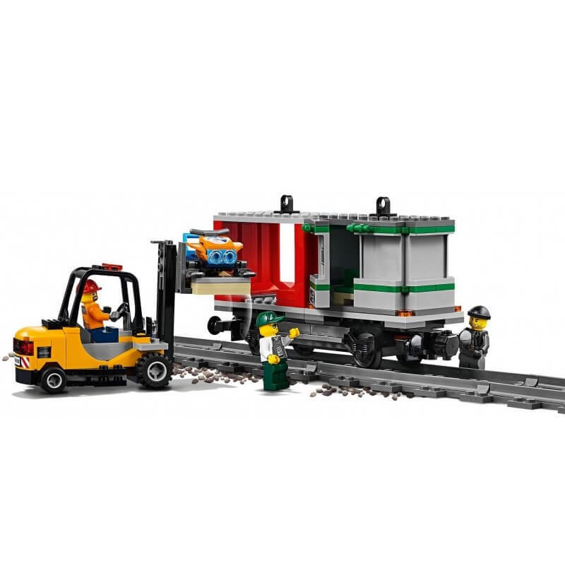 Подготовьтесь к захватывающей игре с конструктором LEGO City Trains 60198 «Товарный поезд». Приготовьте товарный поезд, а потом приступайте к перевозке грузов. Привезите контейнеры, положите на поезд, а затем прицепите к локомотиву вагоны, сядьте в кабинку, дайте гудок и начните движение.