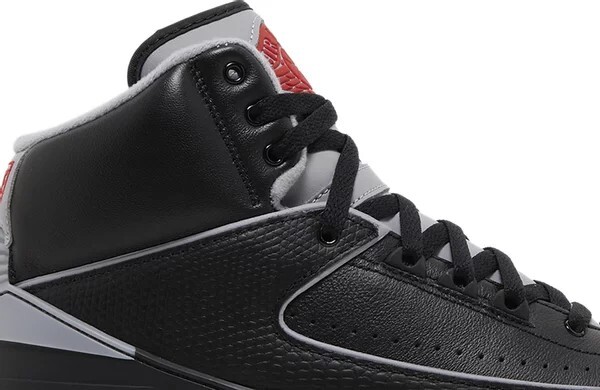 Air Jordan 2 Retro «Black Cement» заимствованы из культовой цветовой гаммы AJ3. Фирменные кроссовки Майкла Джордана для второкурсника, созданные в соответствии с оригинальными характеристиками силуэта 1986 года, имеют черный кожаный верх с накладкой в тон средней части стопы, отделанной характерной текстурой ящерицы и очерченной серым кантом. Соответствующие акценты цвета Cement Grey расположены на пятке и язычке с логотипом Nike, на которых изображен тисненый логотип Wings огненно-красного цвета. Высокий верх установлен на белой полиуретановой межподошве с инкапсулированной амортизирующей подошвой Air-sole и прочной двухцветной резиновой подошвой.