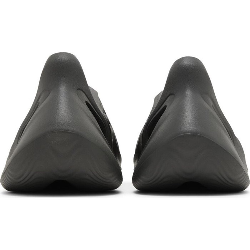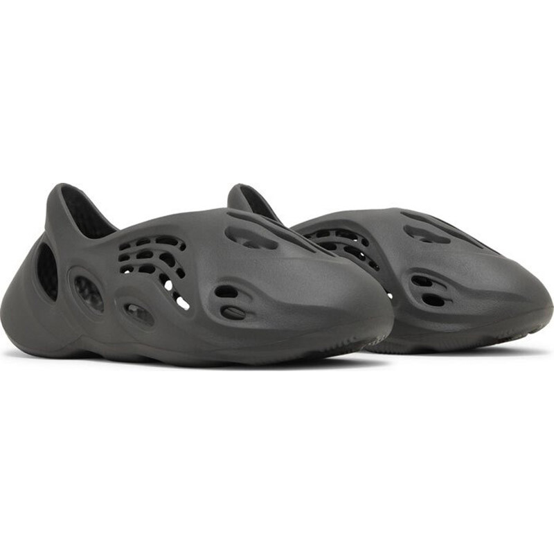 Модель Adidas Yeezy Foam Runner 'Carbon'. Темный серый оттенок нанесен на цельную конструкцию из инжектированной пены EVA с плавными линиями и скульптурной пяткой, предназначенной для фиксации задней части стопы. Вентиляционные отверстия, расположенные по всей длине мыска и боковых панелей, обеспечивают повышенную воздухопроницаемость, а текстурированная стелька обеспечивает комфортную посадку. Силуэт, напоминающий сабо, поддерживается прочной резиновой подошвой.