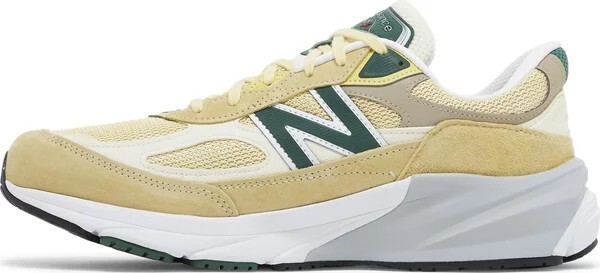Teddy Santis x New Balance 990v6 «Сделано в США» цвета «Бледно-желтый» — это готовая к летнему цветовая гамма беговых кроссовок для образа жизни. Верх выполнен на основе желтой сетки и лишен стандартного седла в средней части стопы, что позволяет замше из свиной кожи и синтетическим накладкам беспрепятственно перетекать от пятки к носку. Контрастные зеленые акценты расположены на фирменном логотипе «N» и язычке New Balance 990. Кроссовки оснащены межподошвой ENCAP из легкой пены FuelCell с прочным полиуретановым ободом.