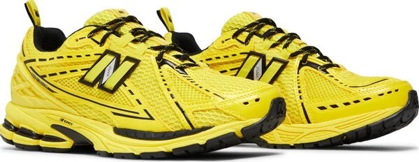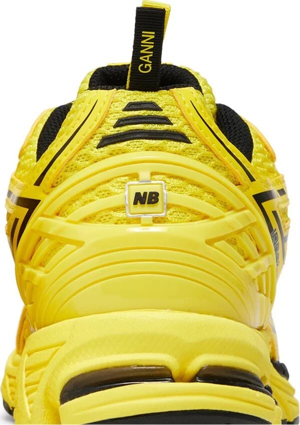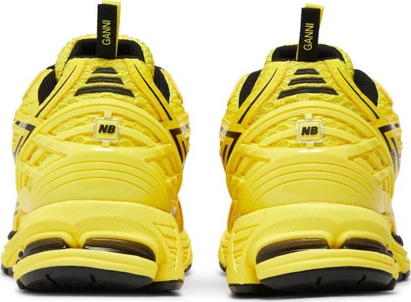 Модель GANNI x New Balance 1906R «Blazing Yellow», дебютировавшая на показе GANNI весной 2024 года на Неделе моды в Копенгагене, имеет ярко-желтый сетчатый верх с накладками из синтетической кожи в тон для дополнительной поддержки и долговечности. Фирменный логотип «N» интегрирован в систему шнуровки N-Lock для надежной посадки, а фирменные язычки на пятке обеспечивают легкое надевание и снятие. Кроссовки оснащены межподошвой ABZORB, каблуками ABZORB SBS и усиленной черной подошвой Stability Web.