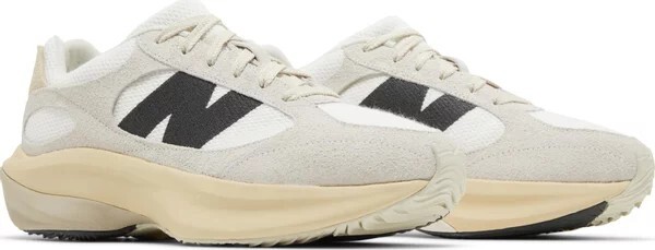 New Balance WRPD Runner «Sea Salt Blacktop» представляет новый силуэт, подчеркивающий изогнутые линии и увеличенные пропорции. Верх выполнен из воздушной белой сетки с волнистыми накладками из ворсистой серой замши. Внешний брендинг ограничен напечатанным черным логотипом «N» на боковой панели. Кроссовки опираются на объемистую межподошву FuelCell, оснащенную средней стойкой устойчивости и поддерживаемую прочной резиновой подошвой, которая охватывает носок и заходит за пятку.