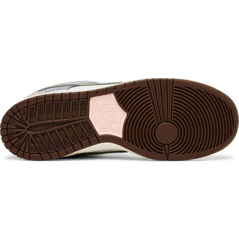 Nike Dunk Low SB х Yuto Horigome - это классический силуэт, созданный японским профессиональным скейтбордистом. Верхняя часть кроссовок выполнена из белой кожи и дополнена серыми замшевыми накладками на носочной и пяточной частях. Помимо кожаного логотипа Swoosh, выполненного в другом оттенке серого цвета, элементы брендинга включают графику в виде перекрещенных перьев на боковой пятке и имя Horigome на язычке Nike SB. На задней вкладке из розовой замши вышит знак Nike, контрастирующий с низким мягким воротником из коричневой замши. Кроссовки имеют прочную подошву с белыми боковыми стенками и цепкой резиновой подошвой коричневого цвета.