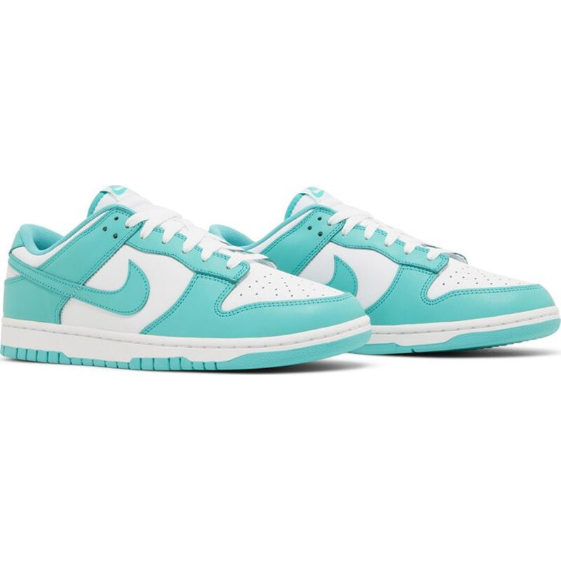 В модели Nike Dunk Low "Clear Jade" используется гладкий кожаный верх, выполненный из чистого белого материала с изумрудно-зелеными накладками и подобранным по цвету логотипом Swoosh. Язычок из воздухопроницаемого нейлона украшен тканым ярлыком Nike, а задний язычок - вышитым знаком Nike. Кроссовки опираются на прочную резиновую подошву, оснащенную внутренней танкеткой из пеноматериала для легкой амортизации.