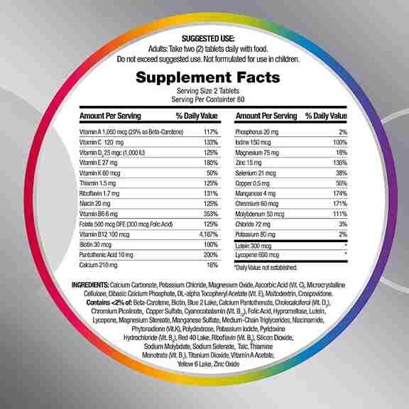 - Специальная формула с учетом возраста помогает поддерживать здоровье сердца и нормальную функцию мозга, поддерживает здоровье глаз и поддерживает здоровую функцию мышц у мужчин 50 лет и старше.