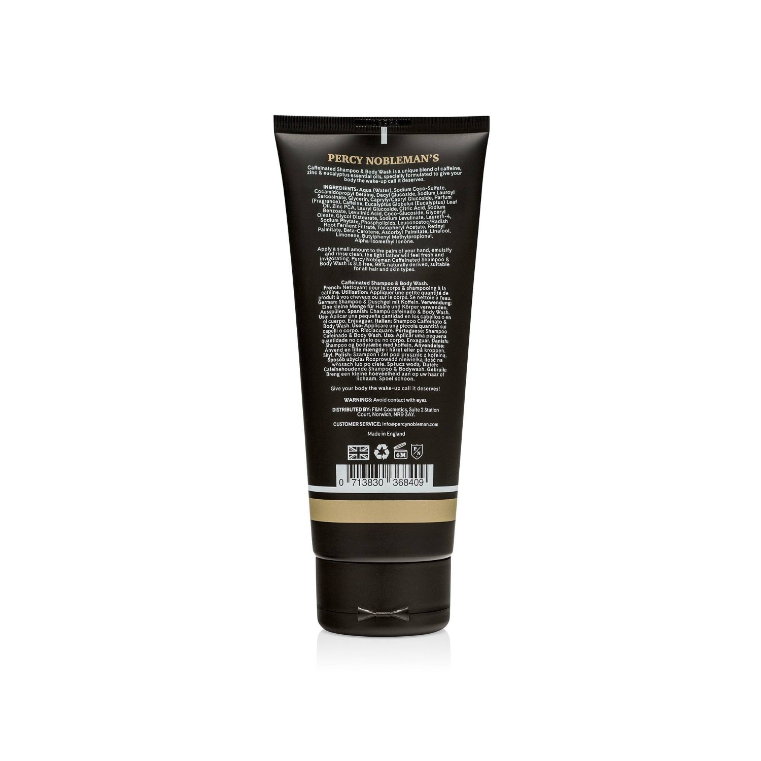 Шампунь и гель для душа PERCY NOBLEMAN с кофеином быстро оживляет уставшую кожу тела и головы. Натуральное очищающее средство с поверхностно-активными веществами, полученными из кокоса, мягко очищает и не нарушает естественный pH- и жировой баланс кожи. Уникальный состав продукта, содержащий кофеин, цинк и эфирное масло эвкалипта, поможет вам проснуться и начать день правильно.