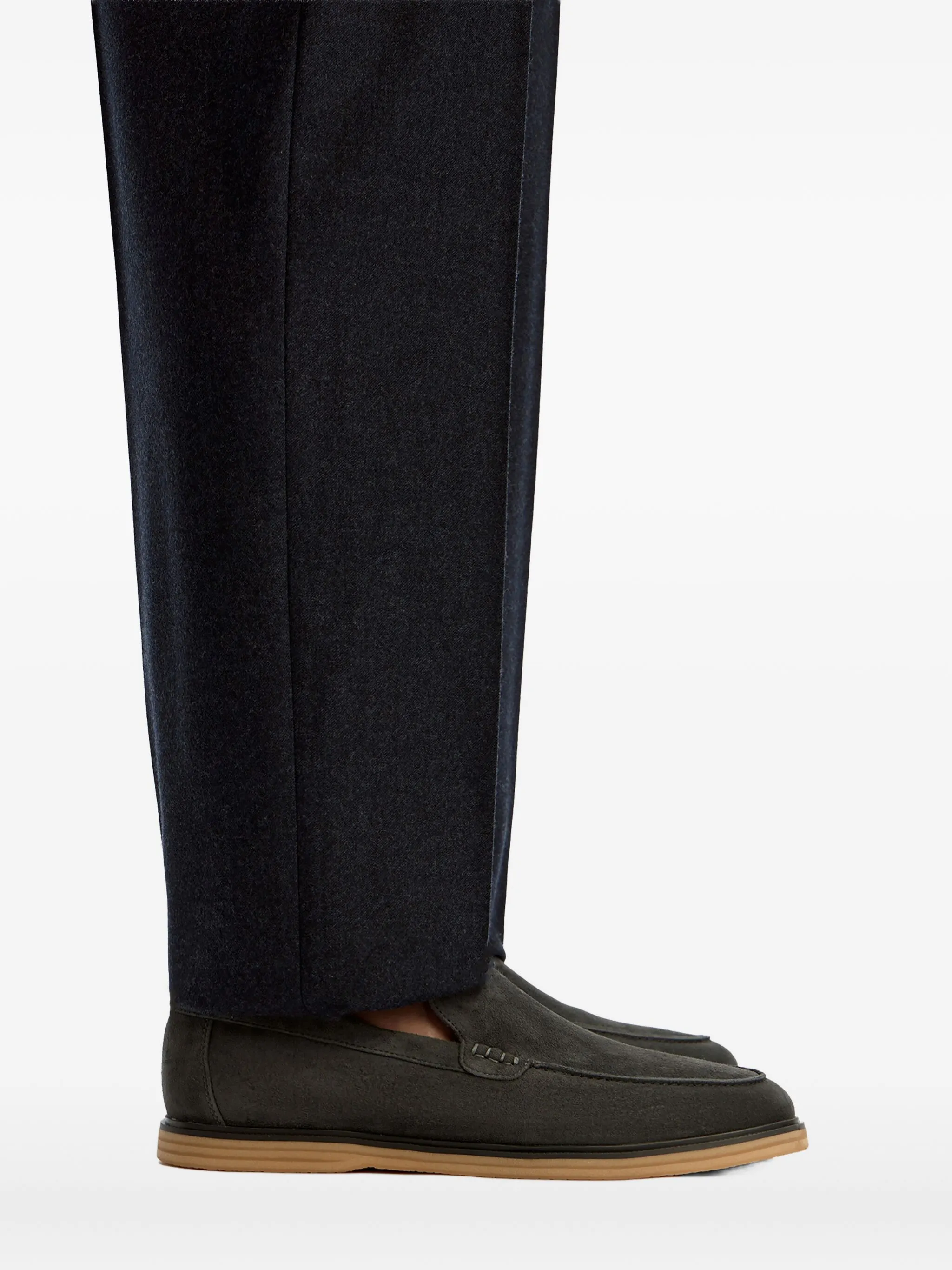 Текстура серой замши, отстрочка верха, плоская подошва из кожи
